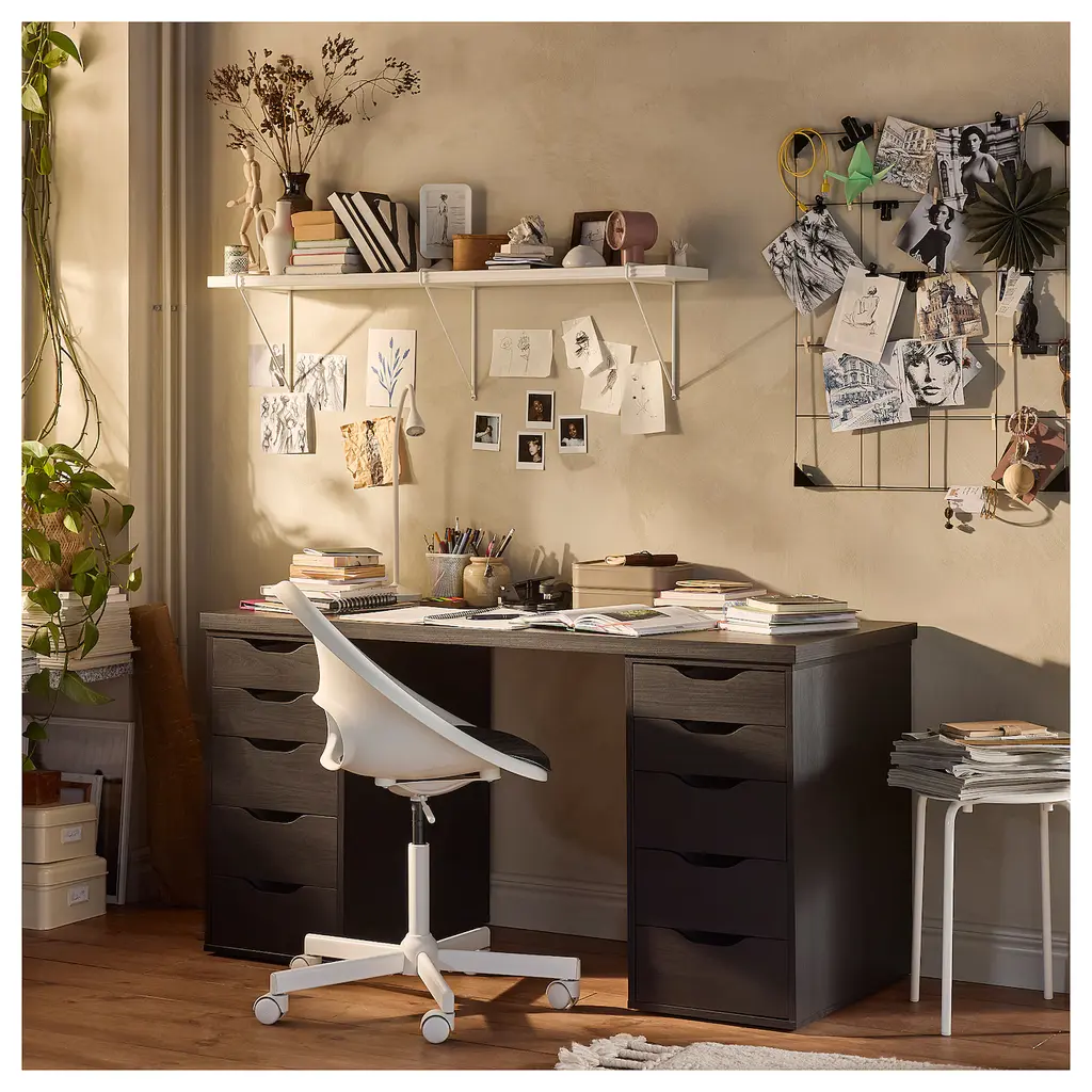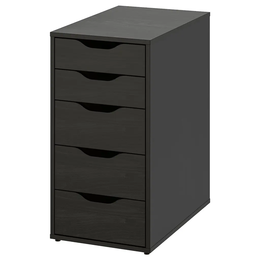 ALEX Drawer unit - black-brown 14 1/8x27 1/2 ". Drawer stops prevent the drawer from being pulled out too far. This unit can be placed anywhere in the room because it is finished on the back.