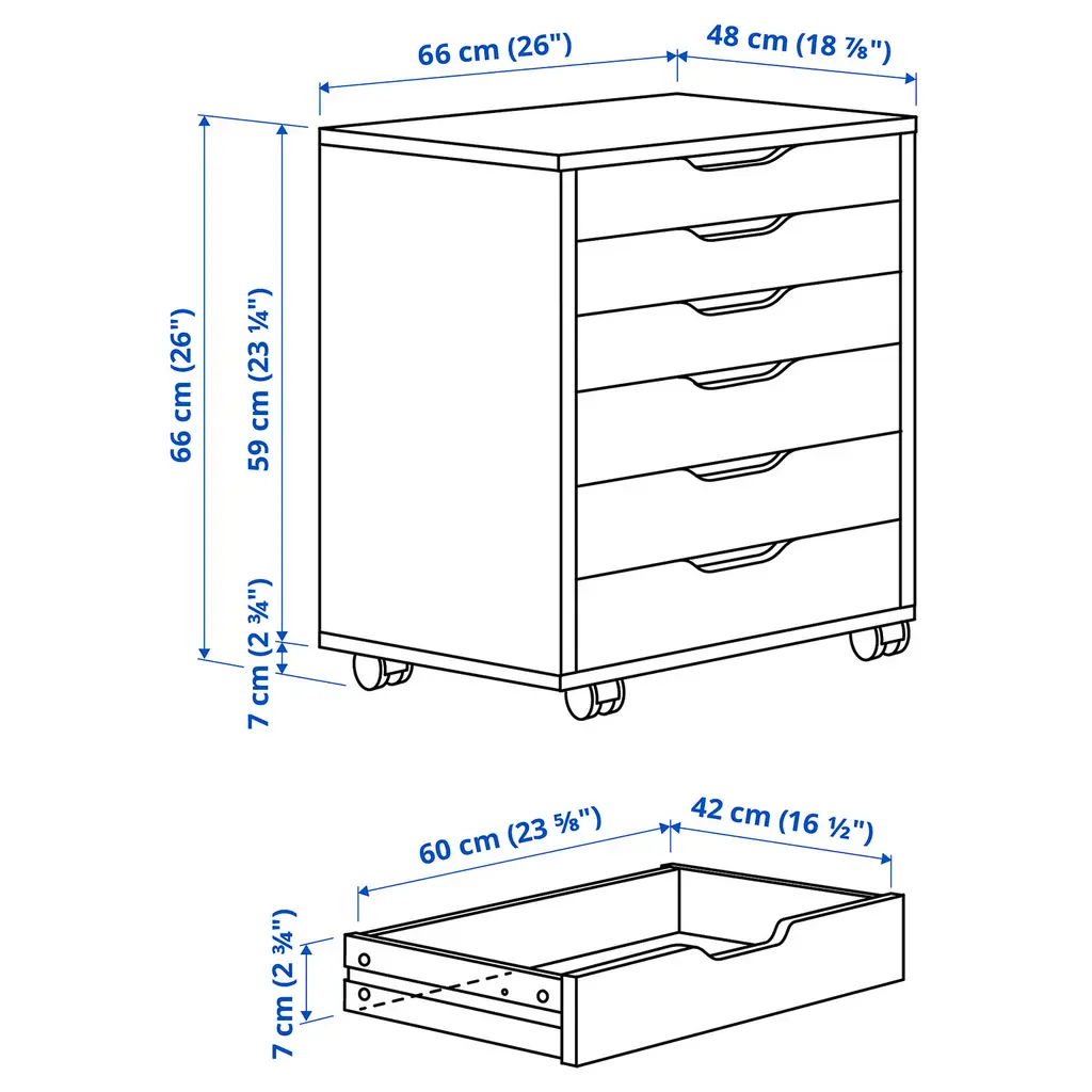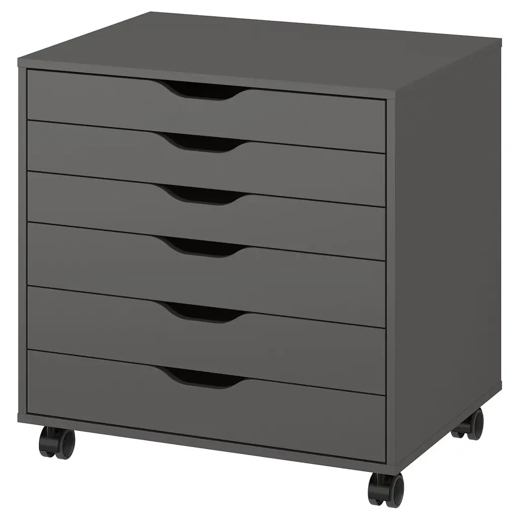 ALEX Drawer unit on casters - dark gray 26 3/8x26 ". Drawer stops prevent the drawer from being pulled out too far. This unit can be placed anywhere in the room because it is finished on the back. Casters included. This product has been developed and tested for domestic use.