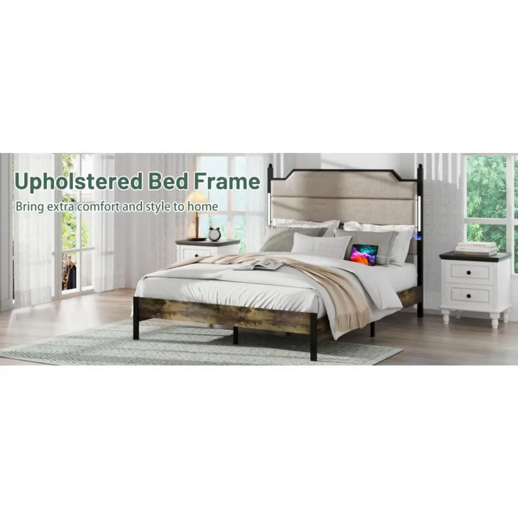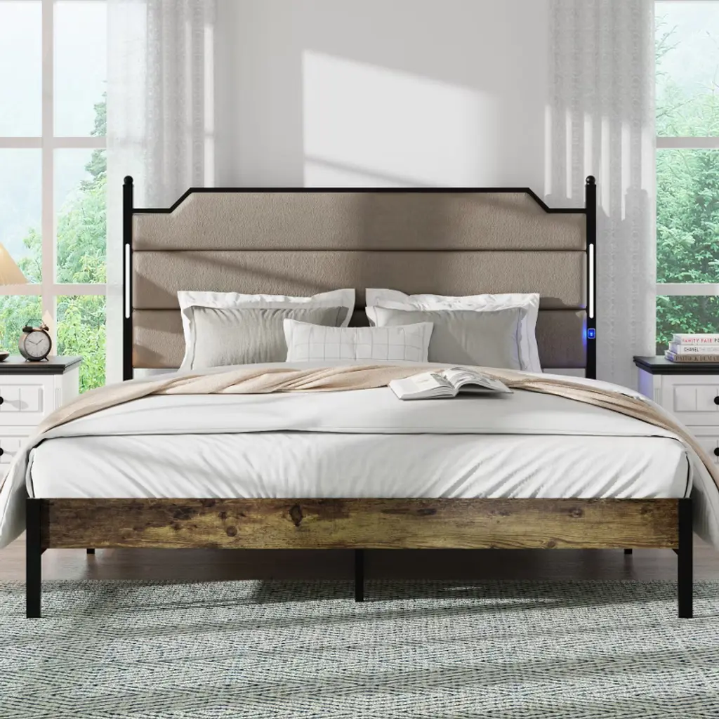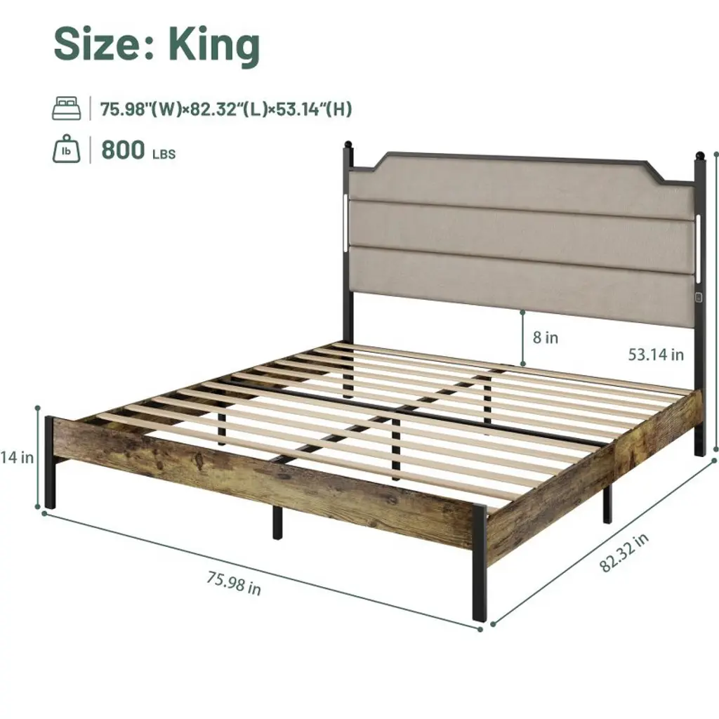 Alexoun King Size Bed Frame With Upholstered Headboard & Wood Slats, Easy Assembly,no Box Spring Needed For Bedroom,apartment,brown