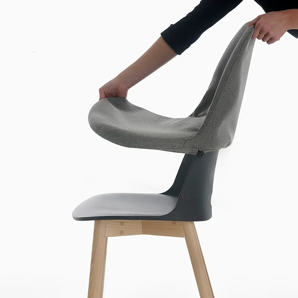 Alfi Soft by Jasper Morrison, 2017 Suitable for all Alfi chairs and stools. Slipcover sold separately, chair/stool not included. Shop chair/stool . Alfi Soft “dresses” our Alfi seats with an upholstered slipcover, offering the comfort and look of a fitted, upholstered seat. Intelligently designed for easy dressing and removing, for both high and low seat backs, in a selection of fabrics and leather as well as COM/COL, subject to approval - please contact us to confirm suitability of custom textiles prior to order. If you order slipcovers to retrofit yourself, please ensure you familiarize yourself with the installation advice prior to order.