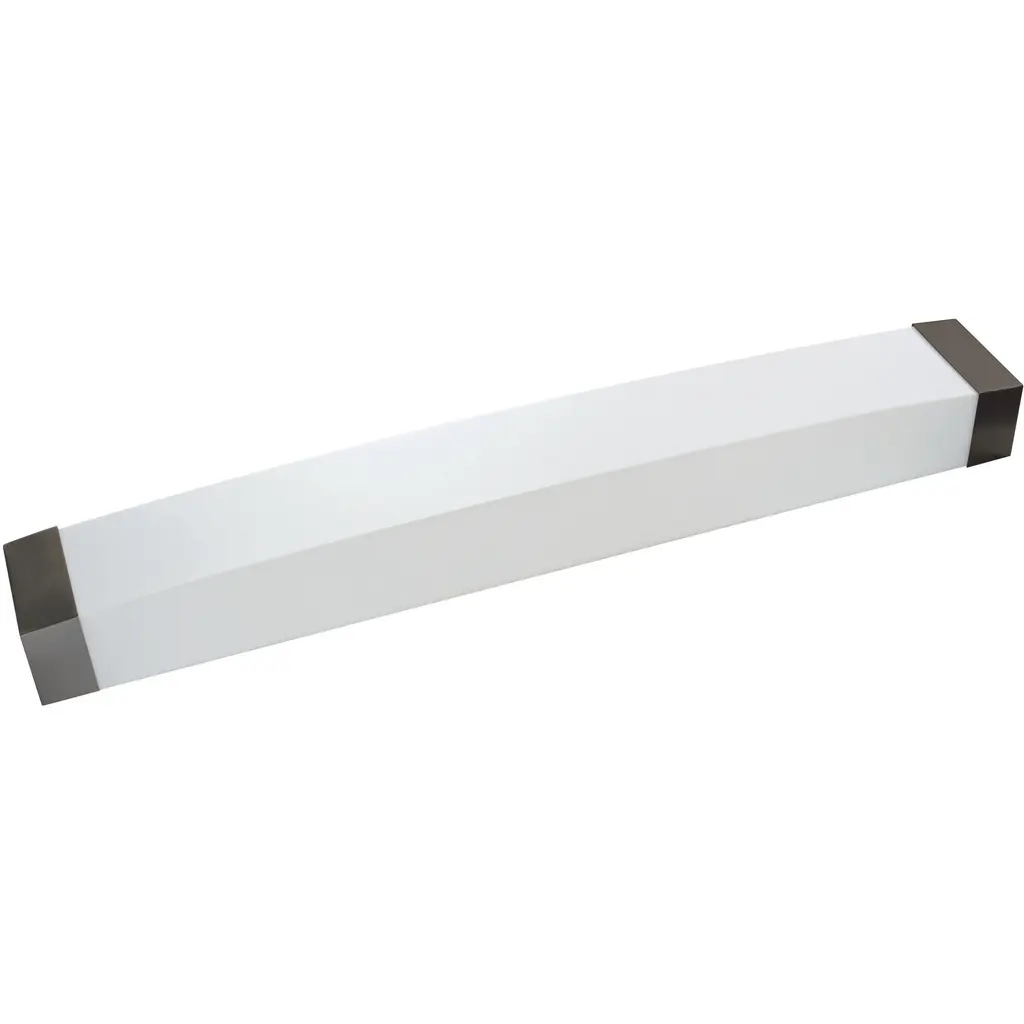 Contemporary wall mount vanity features a simple and clean design with metal end covers.