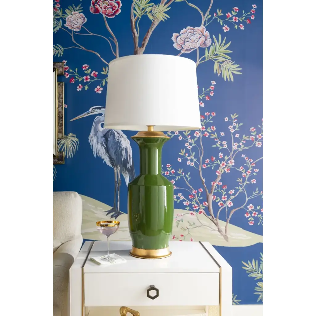The Alia Lamp is defined by its sophisticated shape and rich color, made all the more distinct by its high-fired glazed finish and gold leaf base and finial. An updated take on the classic porcelain lamp, this piece instantly adds welcoming warmth to your living room, bedroom or study and doesn't blend into the background. With that silhouette and eye-catching pop of dark green, how could it? Please note that the shade is sold separately.