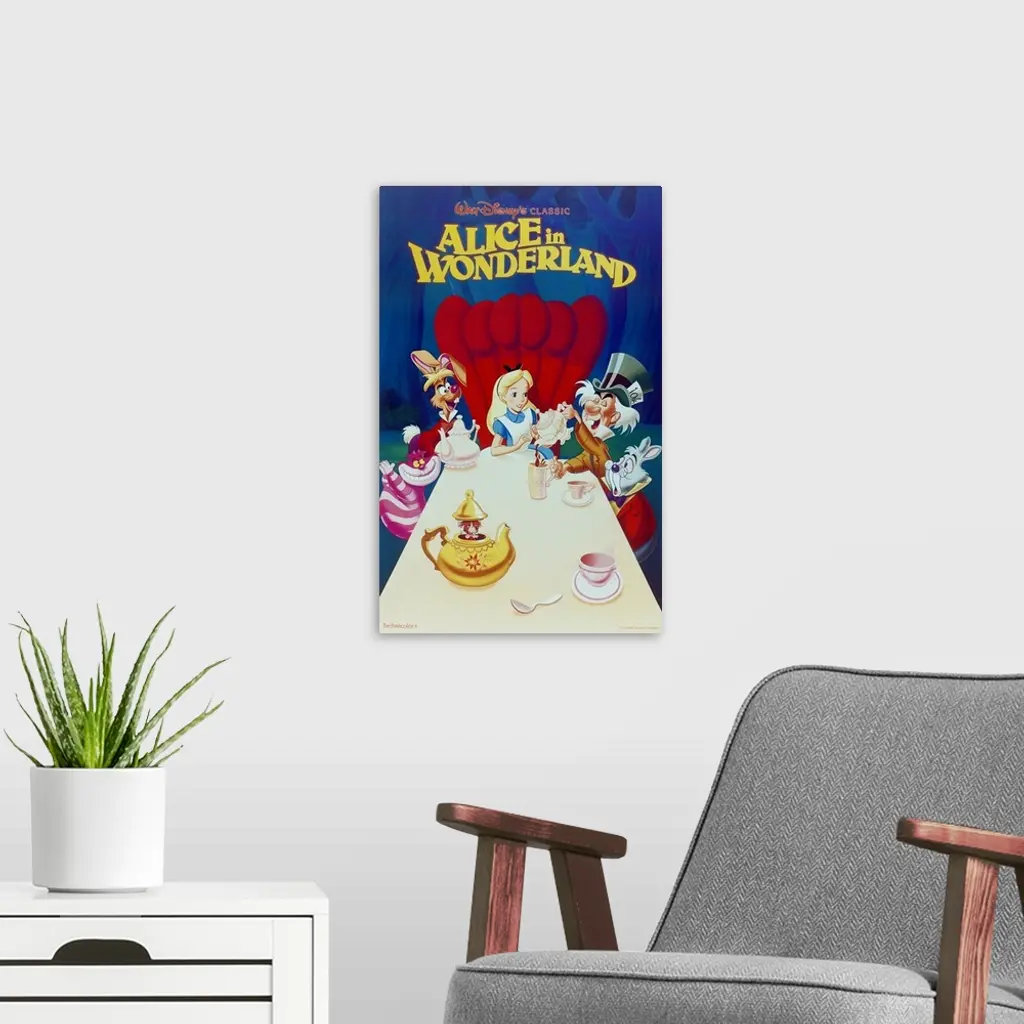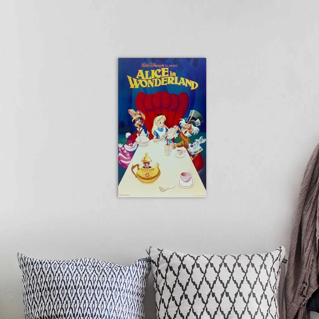 Disney version of Lewis Carroll's Children's story. Alice becomes bored and her mind starts to wander. She sees a white rabbit who appears to be in a hurry. She chases it into its burrow and then a most bizarre series of adventures begins.