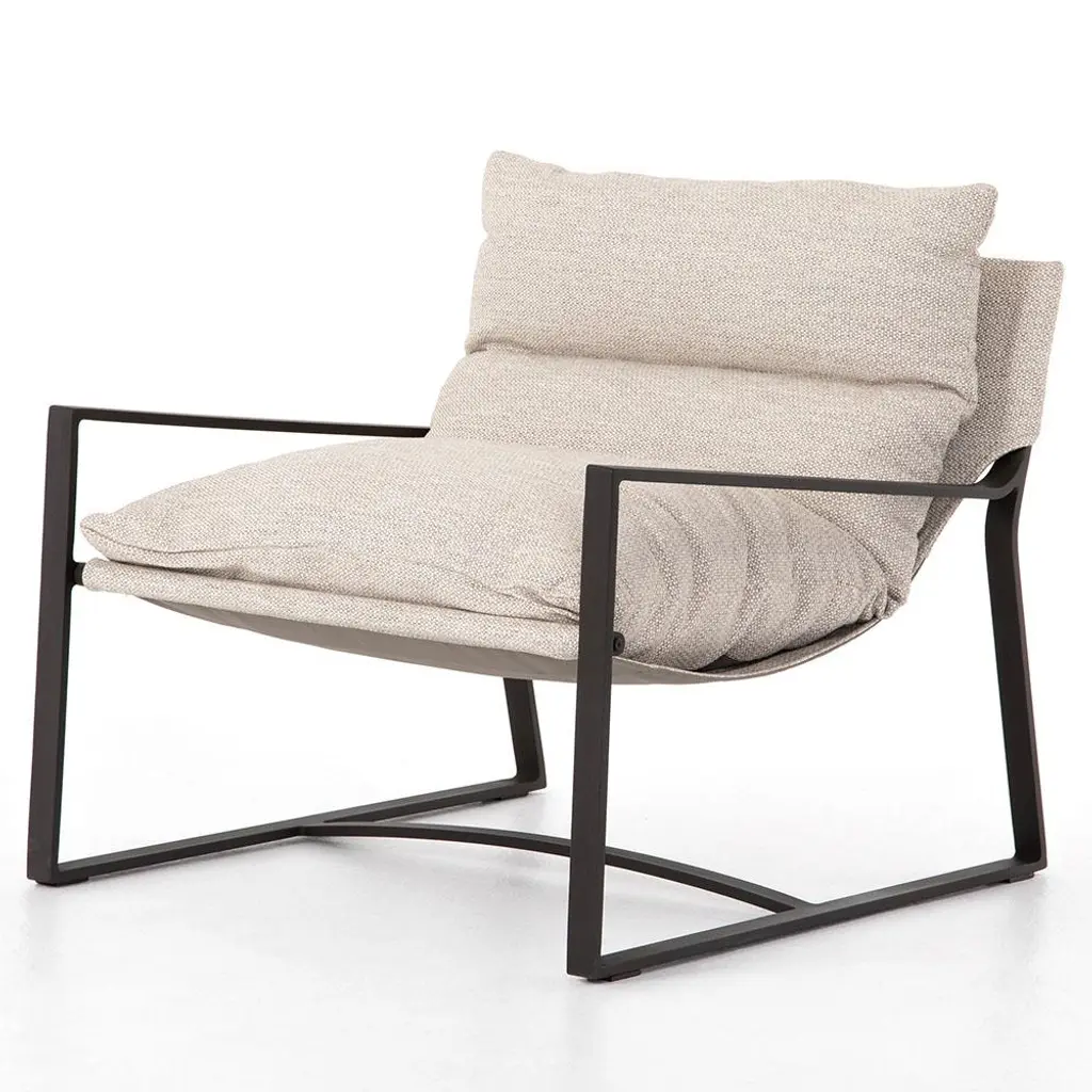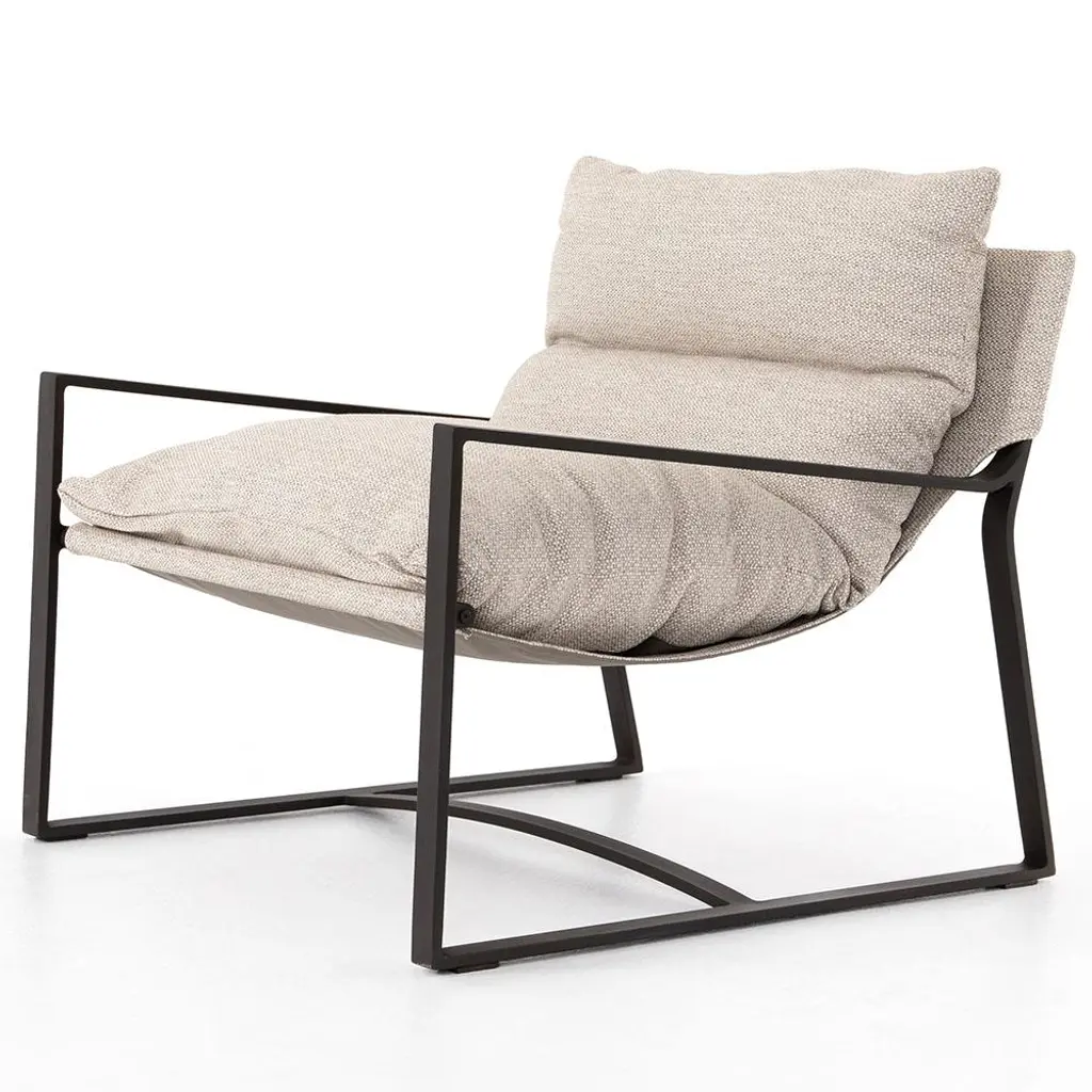 Alice Industrial Loft Beige Cushion Aluminum Outdoor Sling Lounge Chair