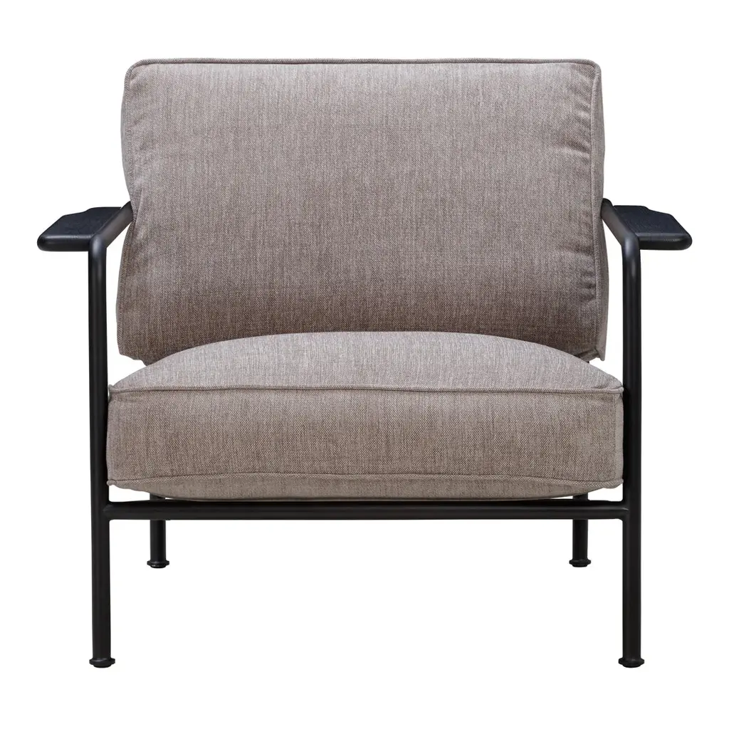 The Alice lounge chair features ultra-comfortable sling seating and industrial design details. Gently angled lines and a bronze finish are highlighted on the aluminum frame. Removable, sand-colored cushioning is covered in highly durable olefin performance fabric, perfect for outdoor use.