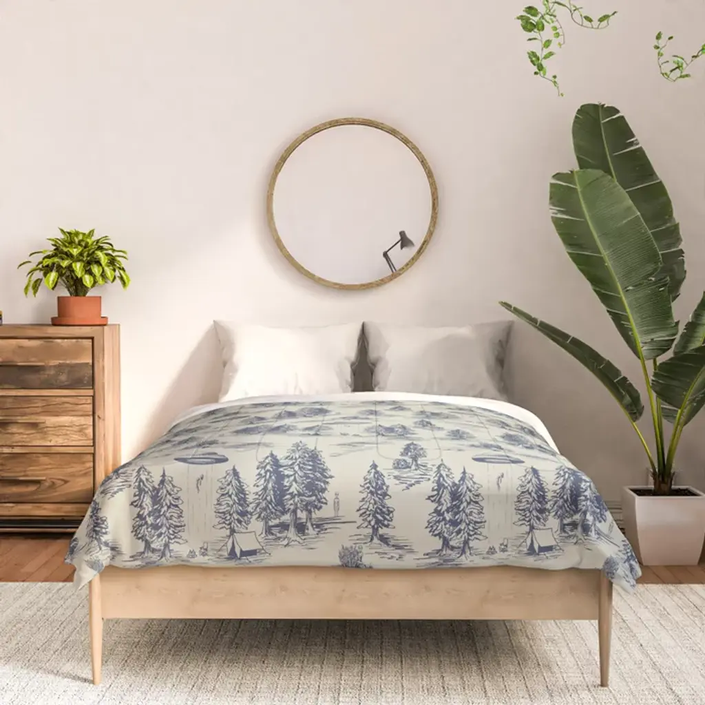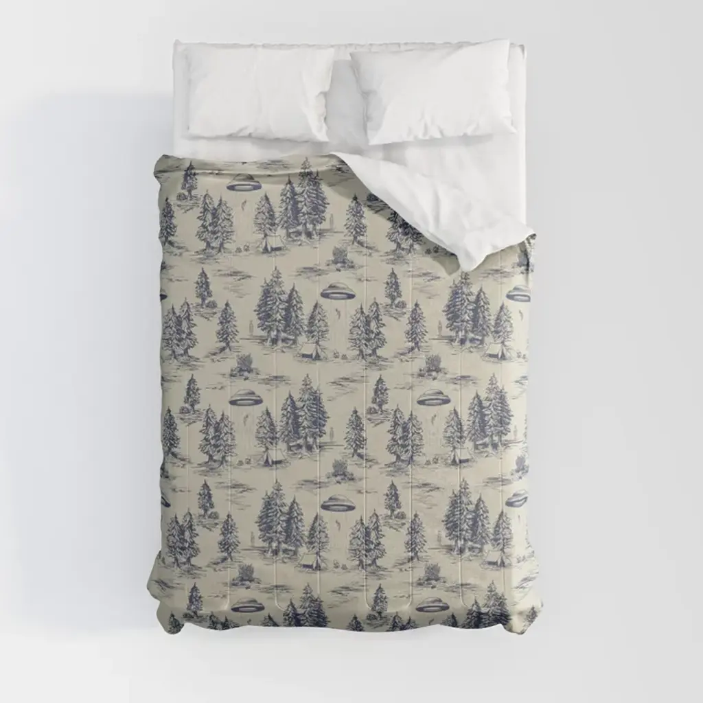 Alien Abduction Toile De Jouy Pattern In Blue Comforter