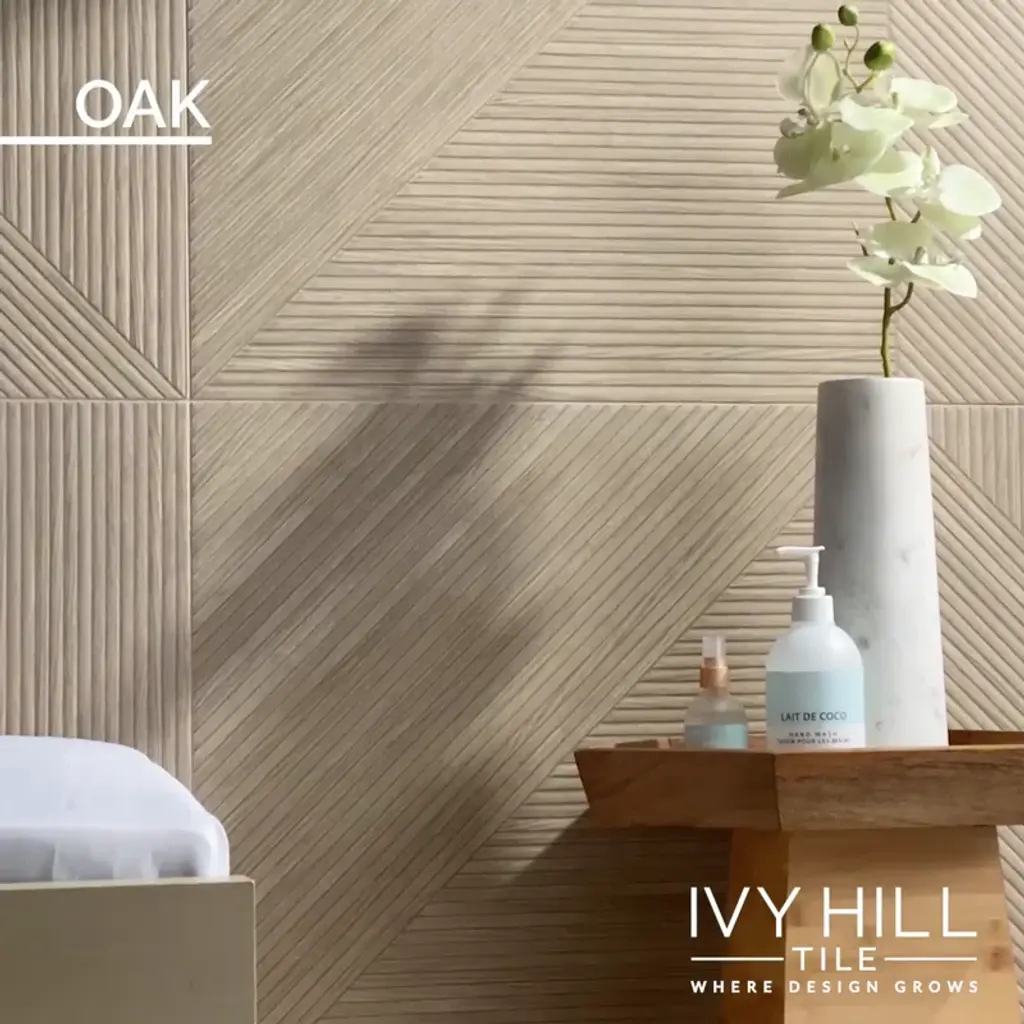 The architectural dimensions of wood find a new voice in the Japanese-inspired stylings of the Refined ribbed collection. Natural wood grain is realistically recreated in a geometric beadboard pattern with the ease of maintenance and clean durability that comes with a porcelain tile. This luxurious wood-look porcelain collection comes in three dynamic colorways.