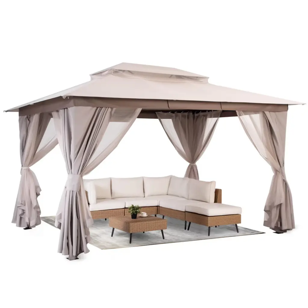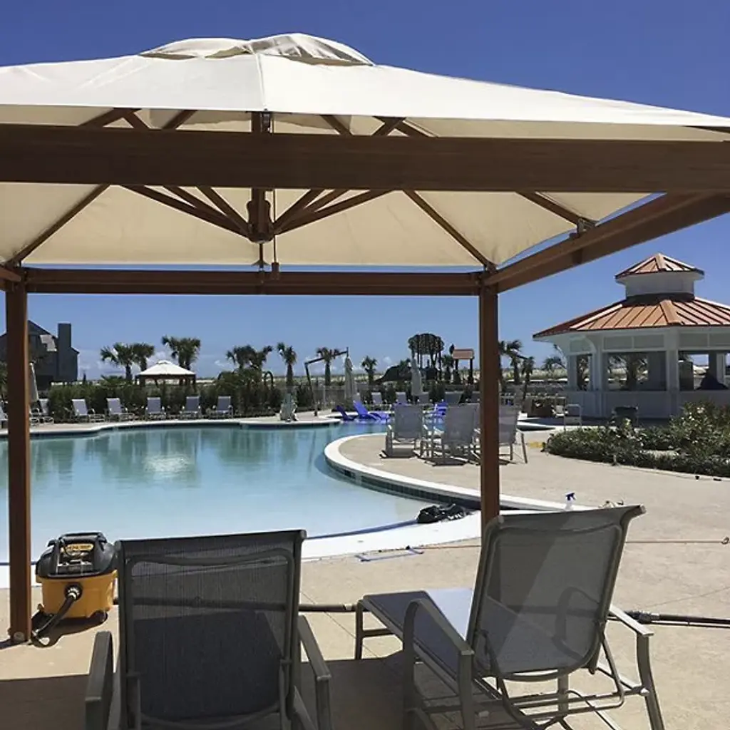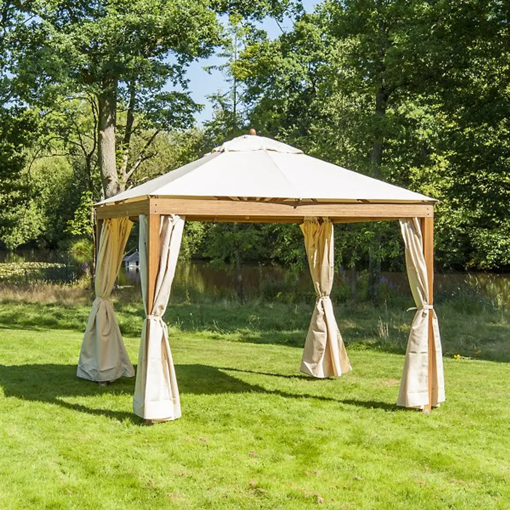 Relax in the fresh air and stay protected and dry with the Alize Rectangular Pavilion Bambrella. A tough structure framed in solid bamboo with steel bolt reinforcement, it incorporates an encompassing array of branches into a roof umbrella mount that suspends a rectangular canopy over the entire structure. Fashioned from a treated polyester called Spuncrylic, the canopy is resistant to the sun, stains, and water, while offering an ultraviolet protection factor of 50.