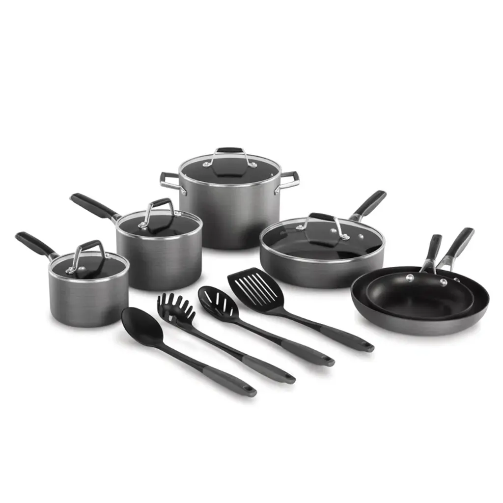 All-Clad extends its commitment to quality cookware to this five-piece set. Each tool in the collectionslotted spoon, solid turner, flexible turner, soup ladlefeatures BPA-free nylon heads and long-reaching stainless steel handles. Ideal for pots and pans of all sizes, the utensils are safe to use with non-stick coating and are, heat-resistant to 440°F. The set includes a tall, round stainless steel caddy to keep utensils gathered and ready for action.All-Clad has been crafting cookware since 1971.