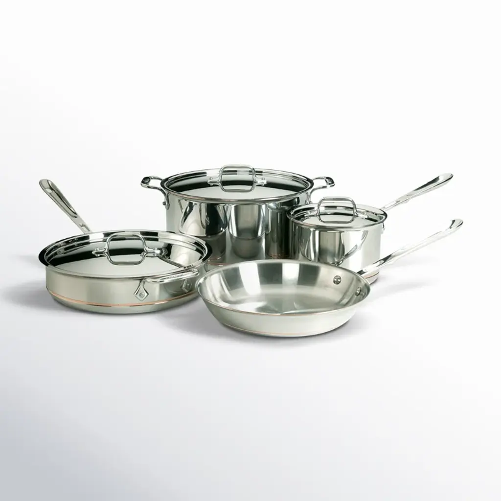 Elevate your culinary creations with this seven-piece stainless steel cookware set, perfect for home chefs and kitchen enthusiasts alike. This versatile set includes a stock pot, saucepan, frying pan, sauté pan, and three matching lids. Designed for compatibility with gas, electric smooth top, and induction stovetops, you'll be able to whip up your favorite dishes with ease. Plus, the stainless steel handles provide a secure grip while you're cooking up a storm. Just remember, this set is designed for home use, so keep it in your kitchen to create some truly delicious meals.