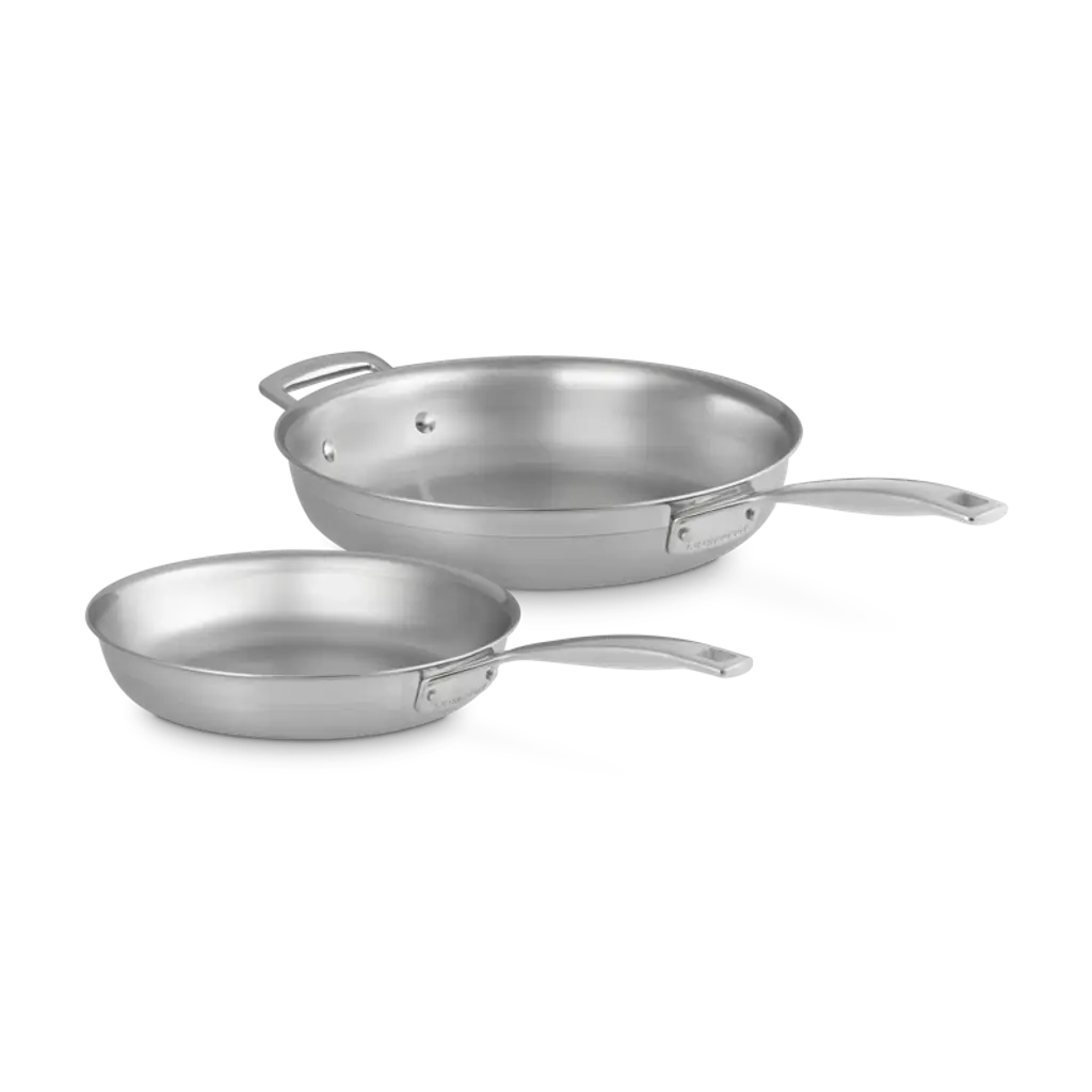 Elevate your culinary creations with this versatile frying pan set, designed to make cooking a joy. With a 5-ply construction and a blend of stainless steel and aluminum, these pans ensure even heat distribution for delicious results. The set includes two pans and matching stainless steel lids, perfect for simmering sauces or sautéing veggies. Compatible with electric plates and oven-safe up to 600°F, they're hand-wash recommended for easy care. Plus, they're PTFE and PFOA free, so you can cook with confidence.