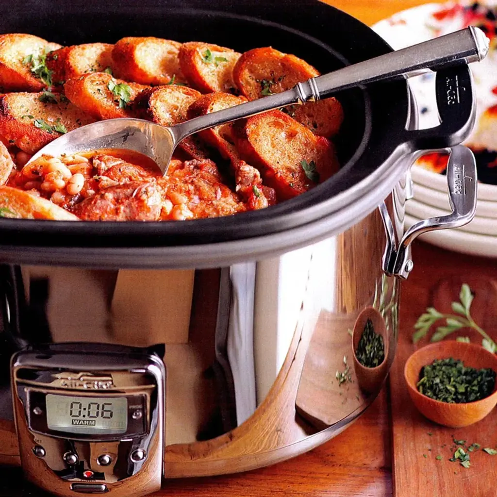 Upgrade your kitchen game with this versatile 7-quart slow cooker, designed to make meal prep a breeze. This programmable gem features an aluminum cooking pot nestled in a sleek stainless steel base. With a removable lid and insert, it's easy to keep an eye on your culinary creations and clean up afterward. The handy indicator light lets you know when it's cooking, and you'll love that the dishwasher-safe components make tidying up a snap. Ideal for busy families and home chefs, this slow cooker is a true kitchen essential.