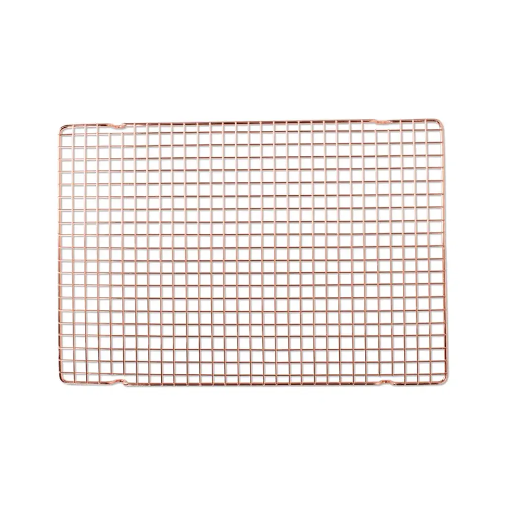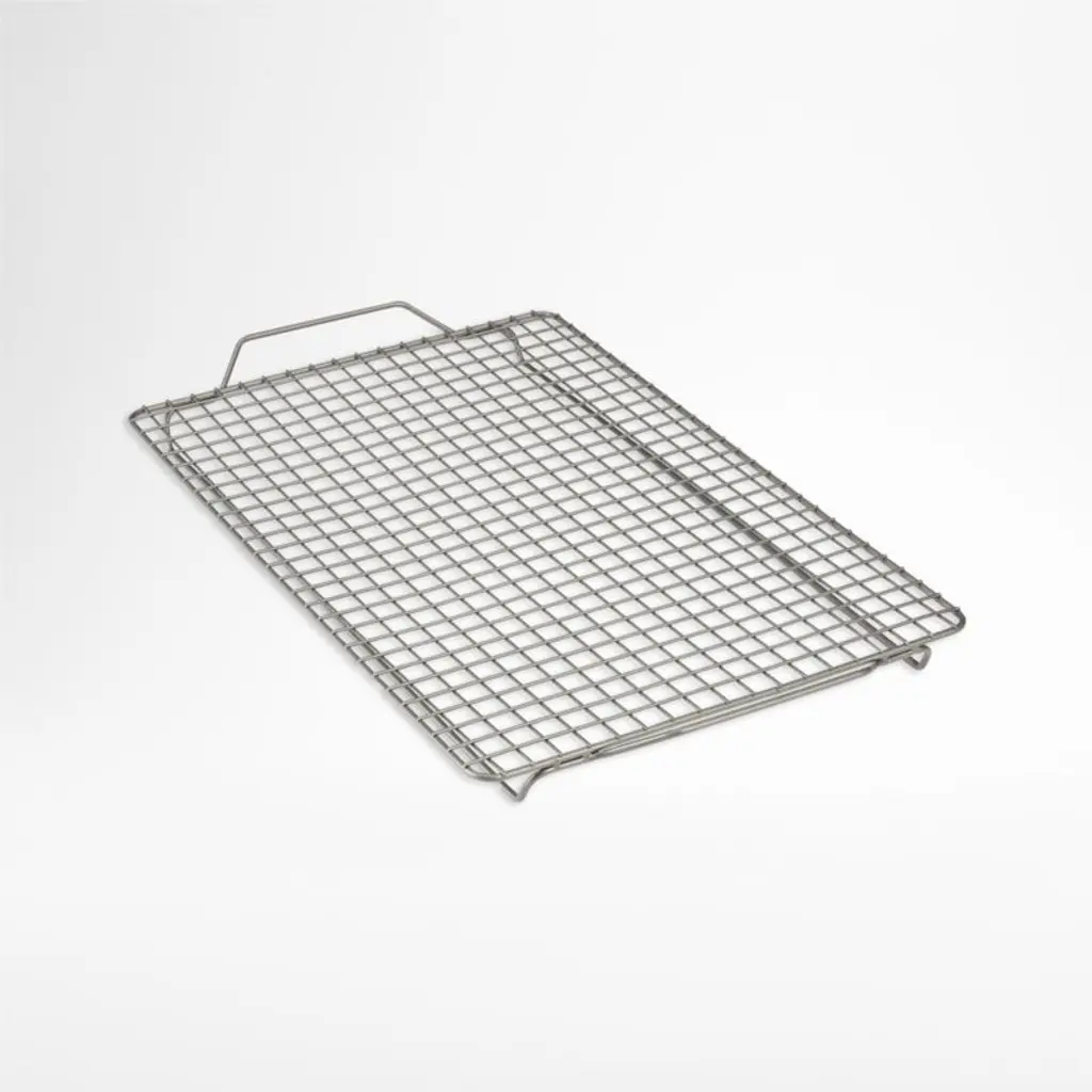 Cool cookies, muffins and cakes on this multifunctional rack, which allows baked goods to cool quickly and crisp perfectly. Or use it with the All-Clad Pro-Release Half-Sheet Pan as a baking rack to roast fish, poultry and cuts of meat, draining off excess fat while letting heat circulate throughout. To glaze bundt cakes, oatmeal cookies and doughnuts, place the lattice-weave rack in a half-sheet pan, pour glaze or ganache and let the excess drip into the pan. Constructed of durable aluminized steel, the rack boasts a ceramic-reinforced non-stick coating that releases foods easily everytime.All-Clad has been crafting cookware since 1971.