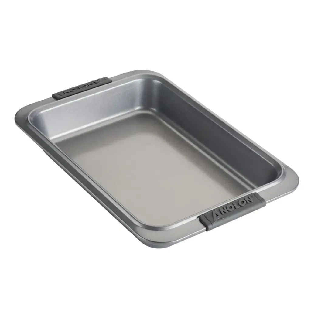 Whip up simple and classic homemade cookies or let the creative baker inside you roam free, with the stylish, high-performance Anolon Nonstick Bakeware 3-Piece Cookie Pan Set. Anolon Bakeware combines top-grade bakeware construction for premium baking performance. Sturdy, warp-resistant heavy-duty steel provides the dependable, steady heating required for great baking, and the cookie sheet rims are rolled for durability. The side handles and rims on each sheet are generously sized for plenty of grasp even with bulky oven mitts. Premium-quality nonstick inside and out promotes even baking and browning, and easy food release for effortless cleanup afterward. While handwashing is recommended, the cookie sheets are conveniently dishwasher-safe. Oven safe to 450°F, the bakeware comes with the Anolon Lifetime Warranty. Revel in the quality baking performance and sophisticated elegance of every pan with the durable Anolon Nonstick Bakeware 3-Piece Cookie Pan Set, and inspire the inner cookie champion within.