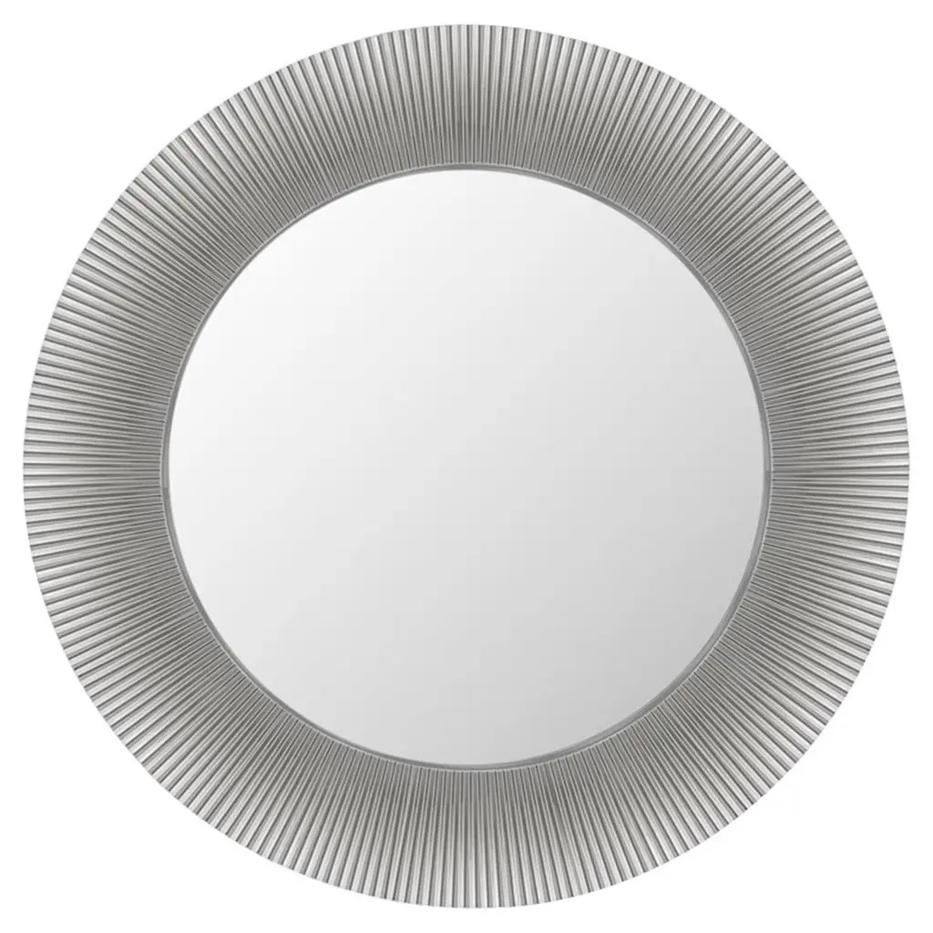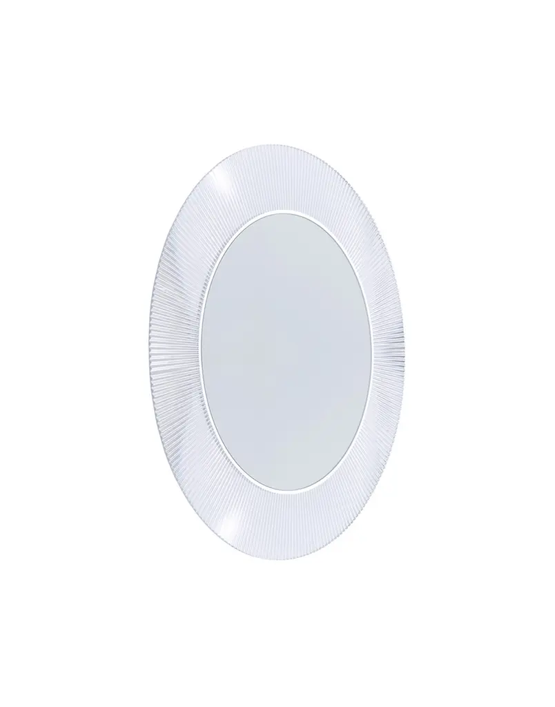 Round mirror with a transparent or coloured frame, with a unique pleated effect.