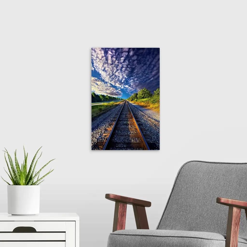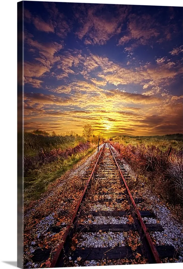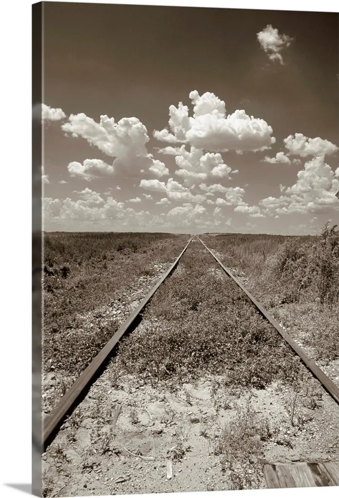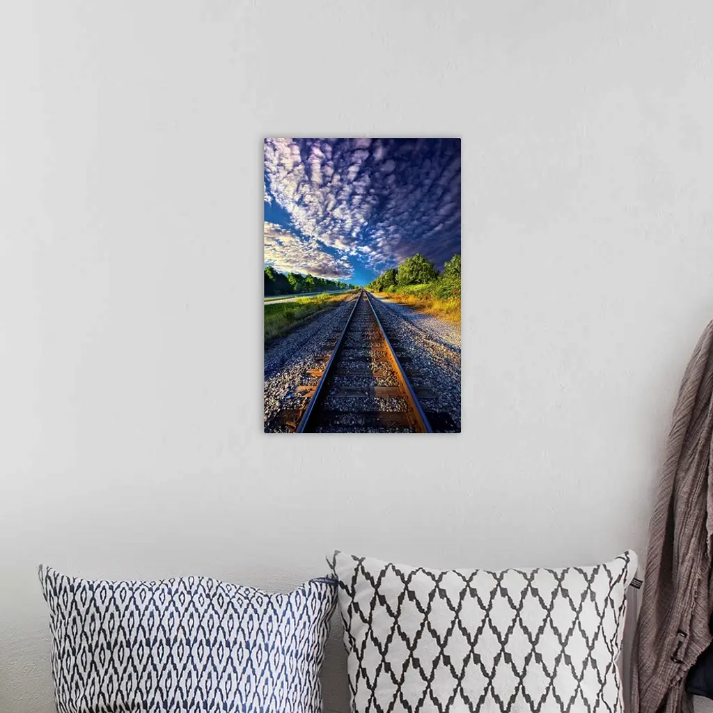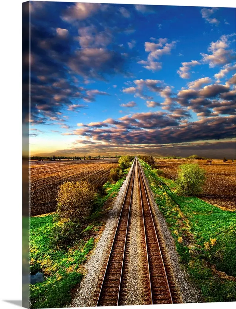 Dramatic cloudscape over railroad tracks in the countryside of Wisconsin.