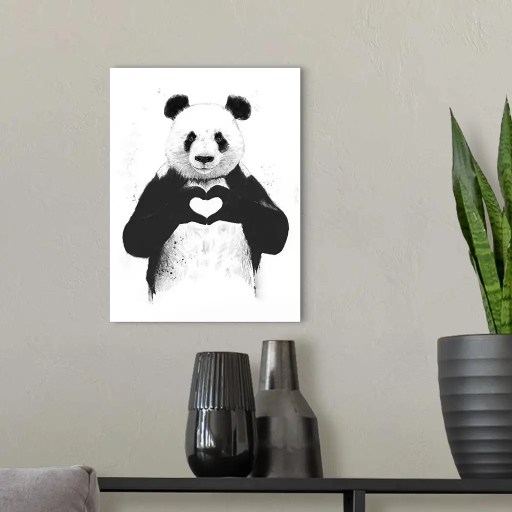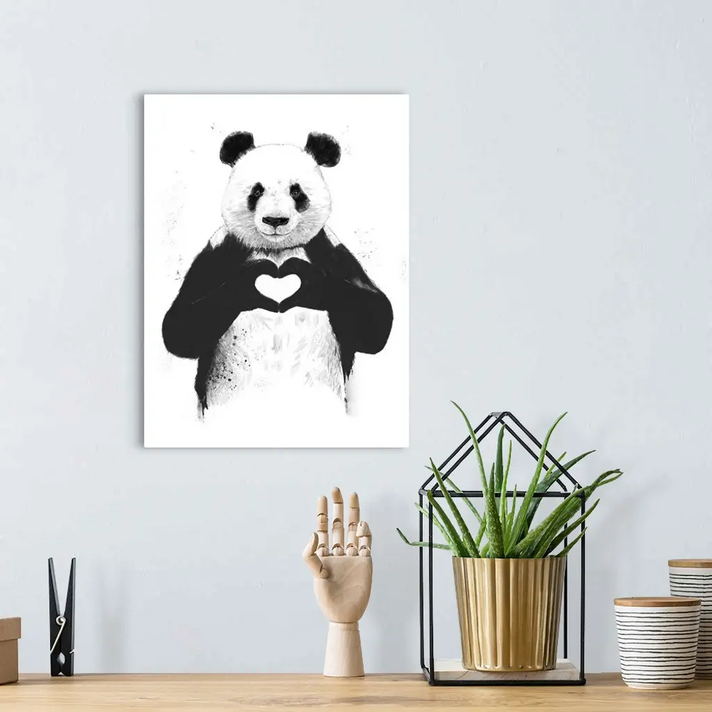 A contemporary illustration of a panda bear holding up paws to make a heart shape.