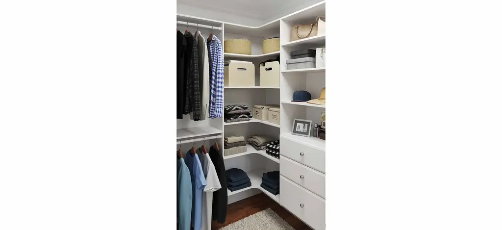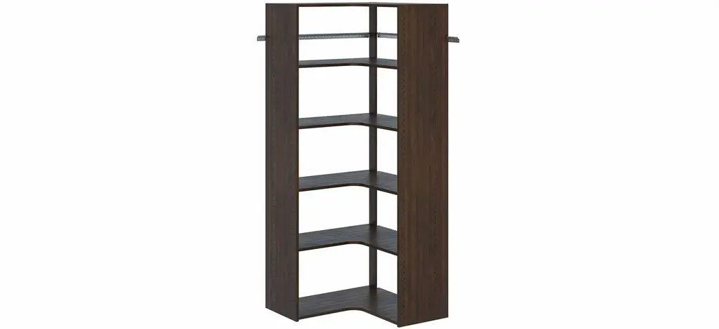 Allen Corner Tower Kit helps you store folded clothing, linens, shoes, hats and more. The tower has three fixed and three adjustable shelves to allow for flexibility. The contemporary gray woodgrain finish complements a wide range of decor styles.
