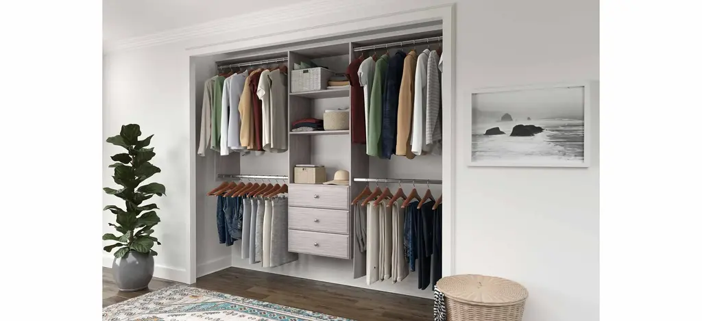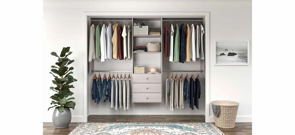 Allen Deluxe Pro Closet Kit with Drawers is affordable custom closet kit--furniture-grade drawers included. DIY installation is easy! All vertical panels and shelves are made with durable thermally fused laminate, with a commercial-grade wood fiber composite core. The system hangs on a steel rail that is mounted to into your studs, so there is no need to remove baseboards.