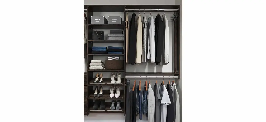 Allen Dual Tower Deluxe Closet Kit includes everything you need to complete your closet, as well as 32 linear feet of shelf space and 11 feet of hanging space. Fits closet sizes from 6 to 10 feet wide. Install as pictured, or, in closets with bypass doors, install the drawer and shelving towers to the left or right for greater accessibility. Combine with additional Easy Track kits for a larger reach-in closet or walk-in. Contact Easy Track customer service for FREE design assistance.