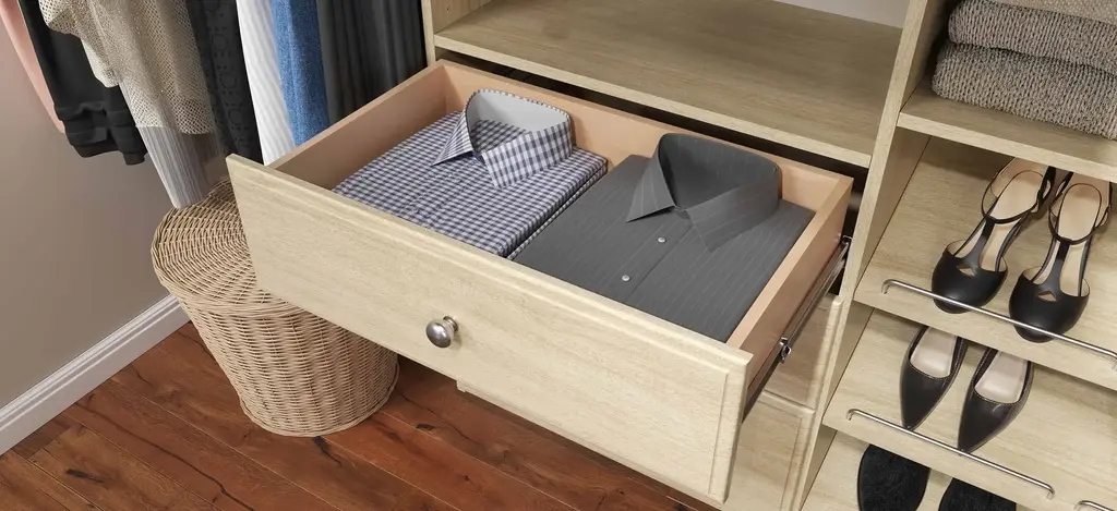 Allen Dual Tower Deluxe Closet Kit includes everything you need to complete your closet, as well as 32 linear feet of shelf space and 11 feet of hanging space. Fits closet sizes from 6 to 10 feet wide. Install as pictured, or, in closets with bypass doors, install the drawer and shelving towers to the left or right for greater accessibility. Combine with additional Easy Track kits for a larger reach-in closet or walk-in. Contact Easy Track customer service for FREE design assistance.