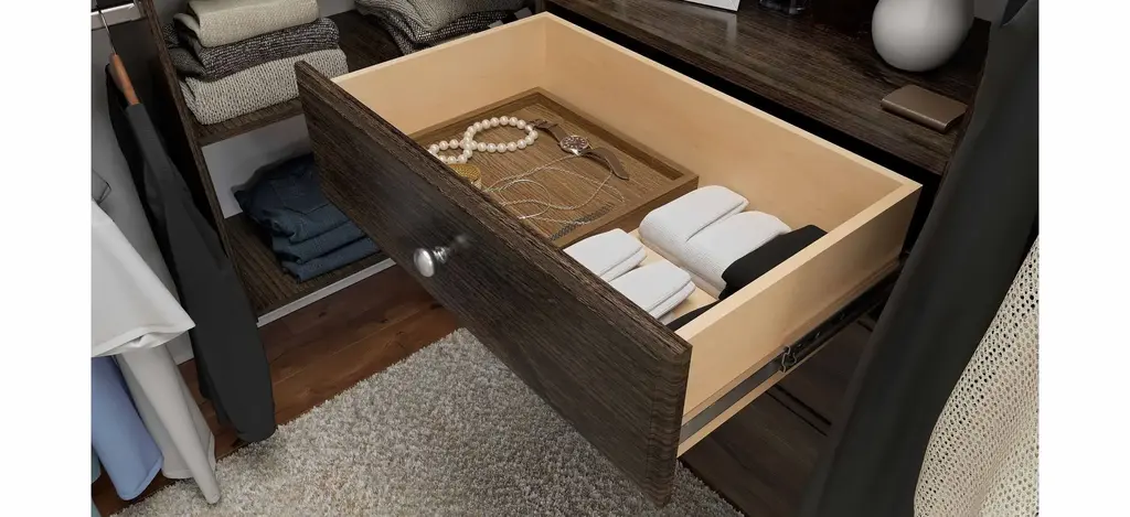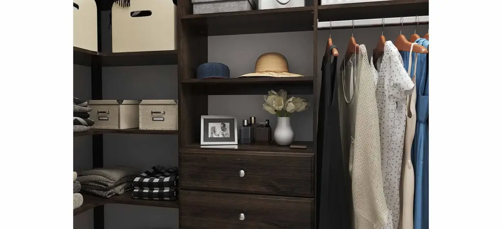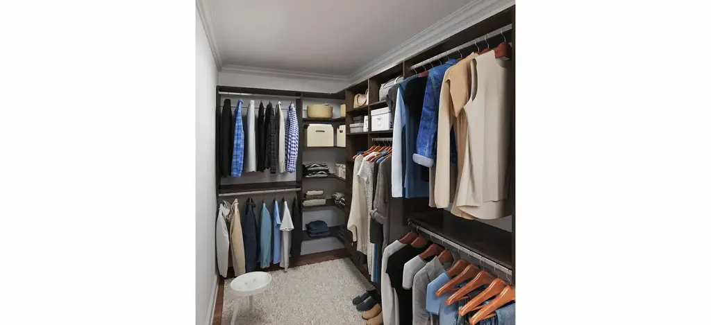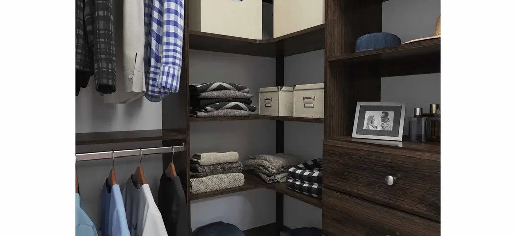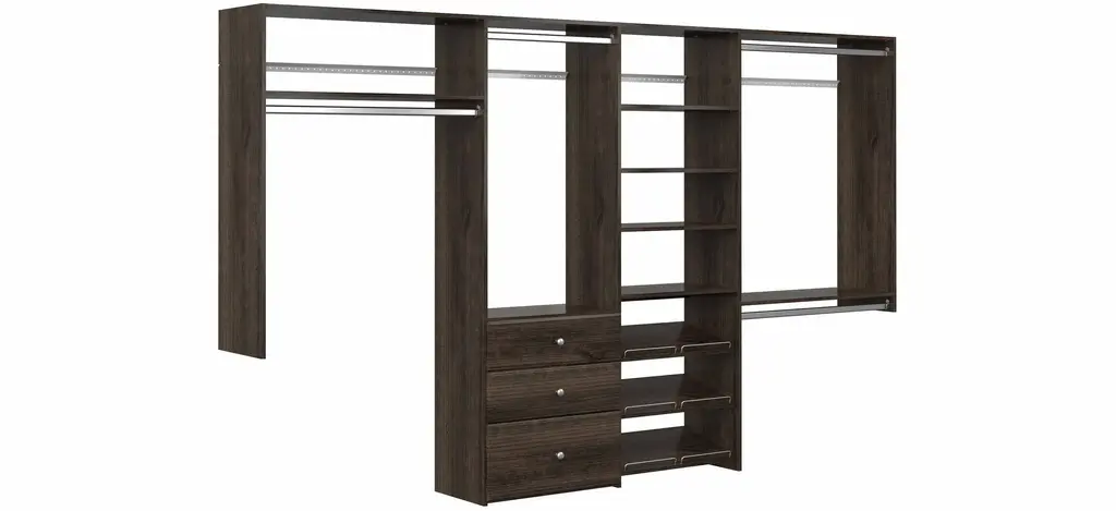 Allen Ultimate Corner Kit helps you store folded clothing, linens, shoes, purses, hats and more, as well as your hanging clothes. The tower and corner sections include adjustable shelves for flexibility. For an easy install, the Easy Track closet system hangs on wall-mounted steel rails and comes complete with all the necessary installation hardware.