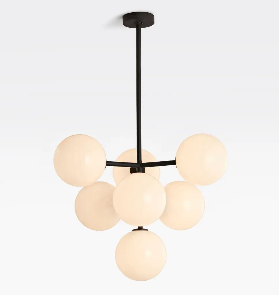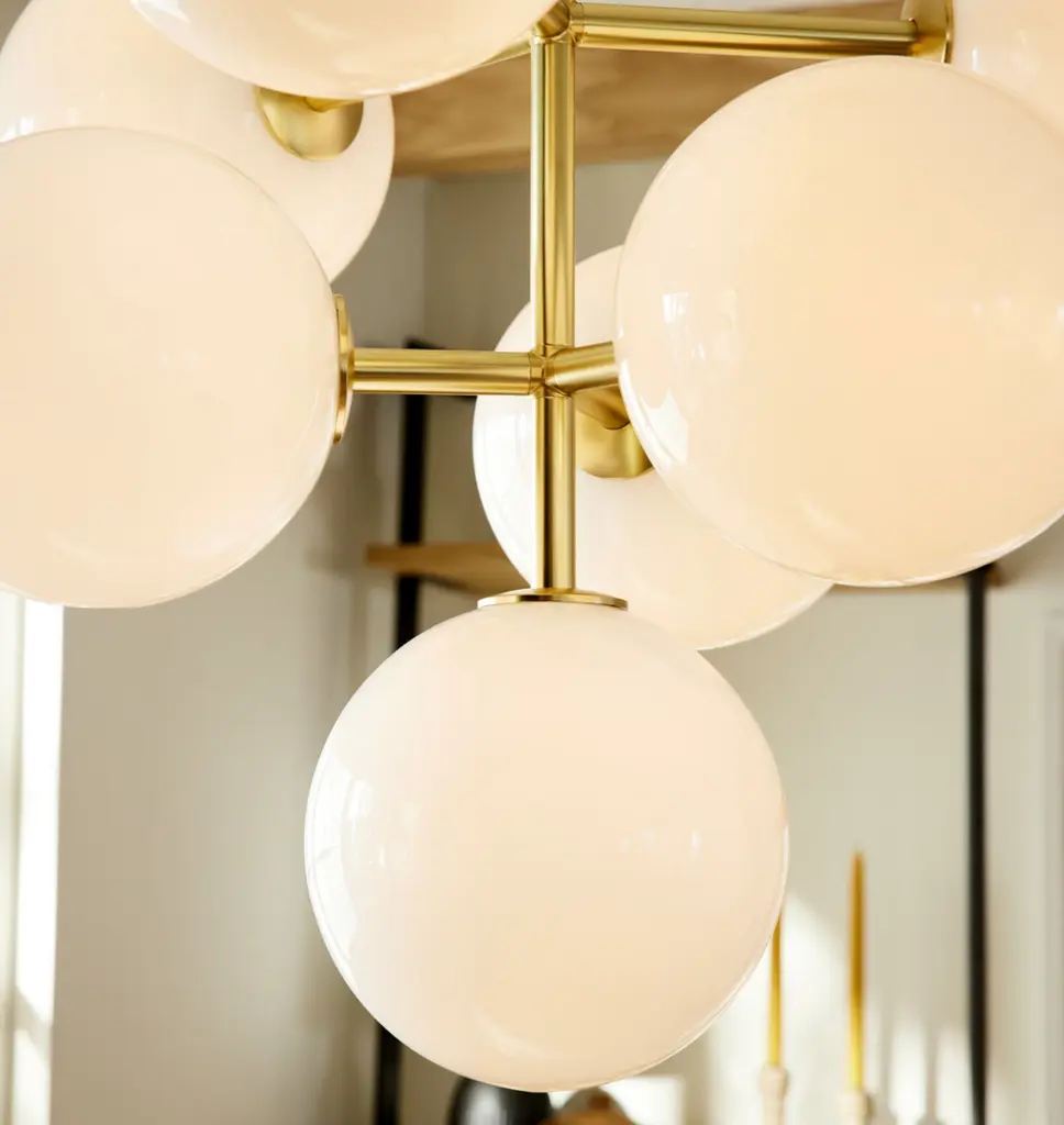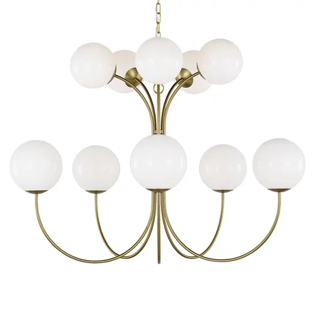 Mid-Century design meets modern construction with our Allenglade Chandelier. Featuring a solid brass down rod and large opal glass shades, Allenglade makes a statement over any dining room table. Available in several finishes, shade sizes, and three-tier options to choose from.