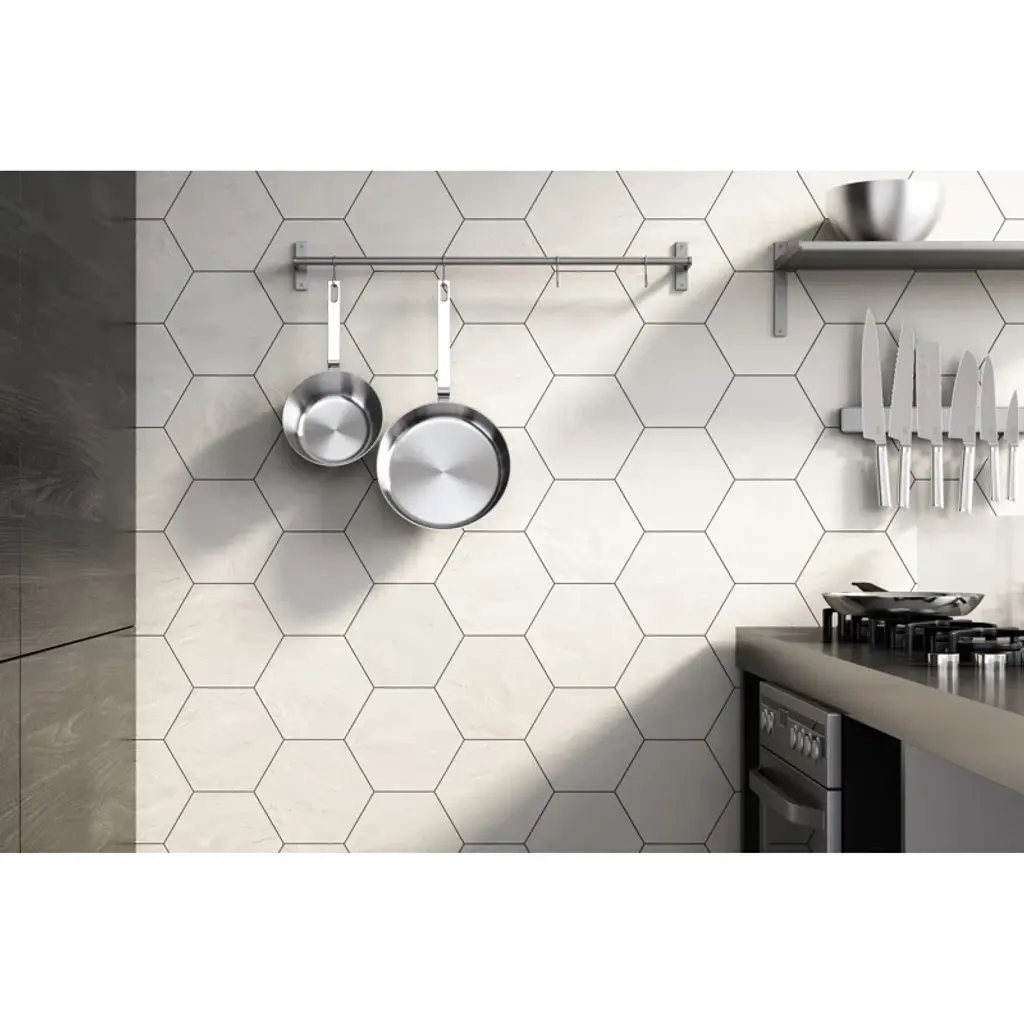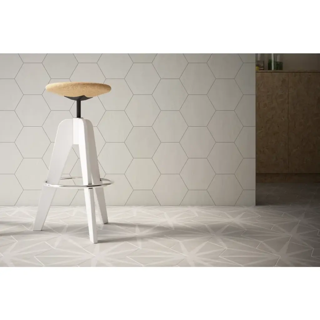 Add geometry to your floors and walls with Allora, an Italian-made matte porcelain tile. The neutral colors blend well with any room style. Create a solid-colored look, and a complete patterned design, or combine the solids and decor for your own look.