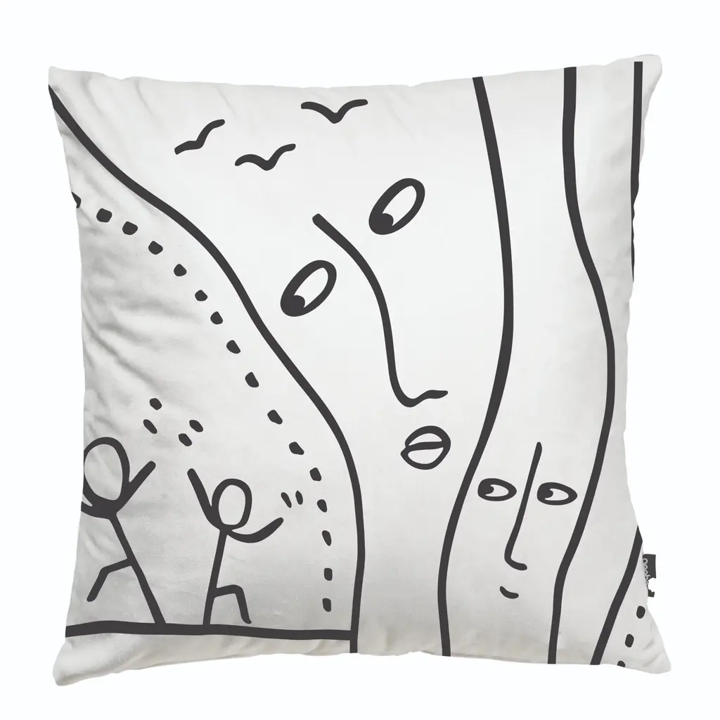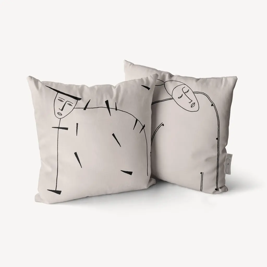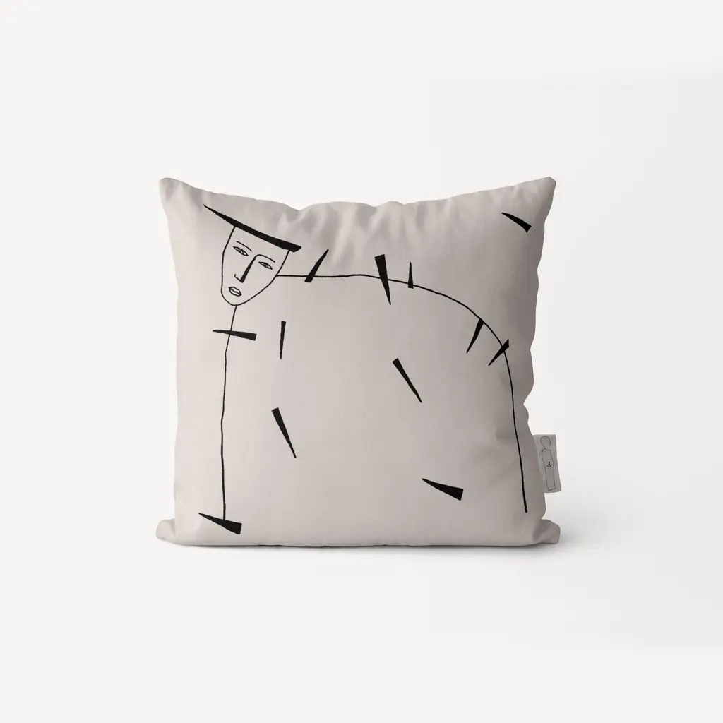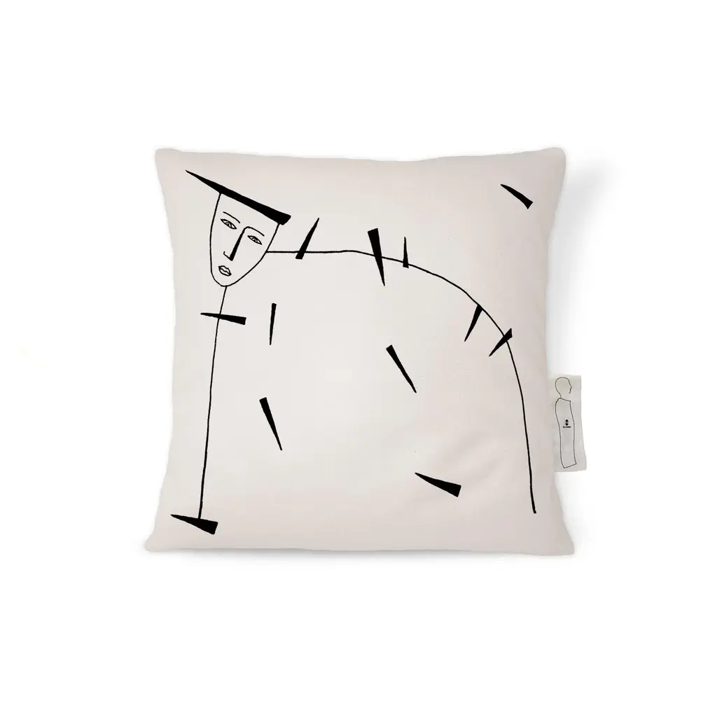 The series of cushions entitled "Alma" represents a set of figures in line with the graphic tradition of Kiasmo. Each design is printed on 100% linen fabric. Six portraits constitute an ideal dialogue between people and images. The softness of the pillow is guaranteed by a lining of selected goose feather. Signed by Maker