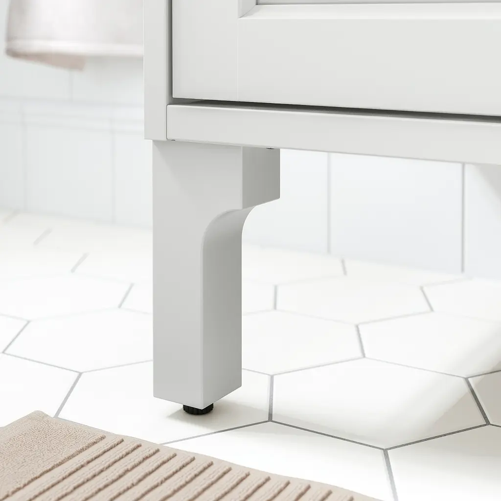 ALMAÅN Leg - light gray 7 ". HAVBÄCK, ÄNGSJÖN and TÄNNFORSEN cabinets are design to be wall-mounted. If you like the look of legs or are unsure how much weight your wall can hold, add 2 ALMAÅN legs at the front of each cabinet. 2 legs included. To be attached at the front of the cabinet only.