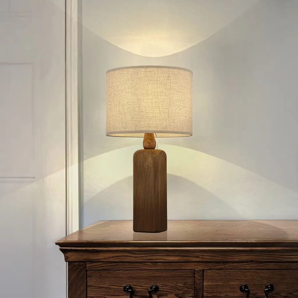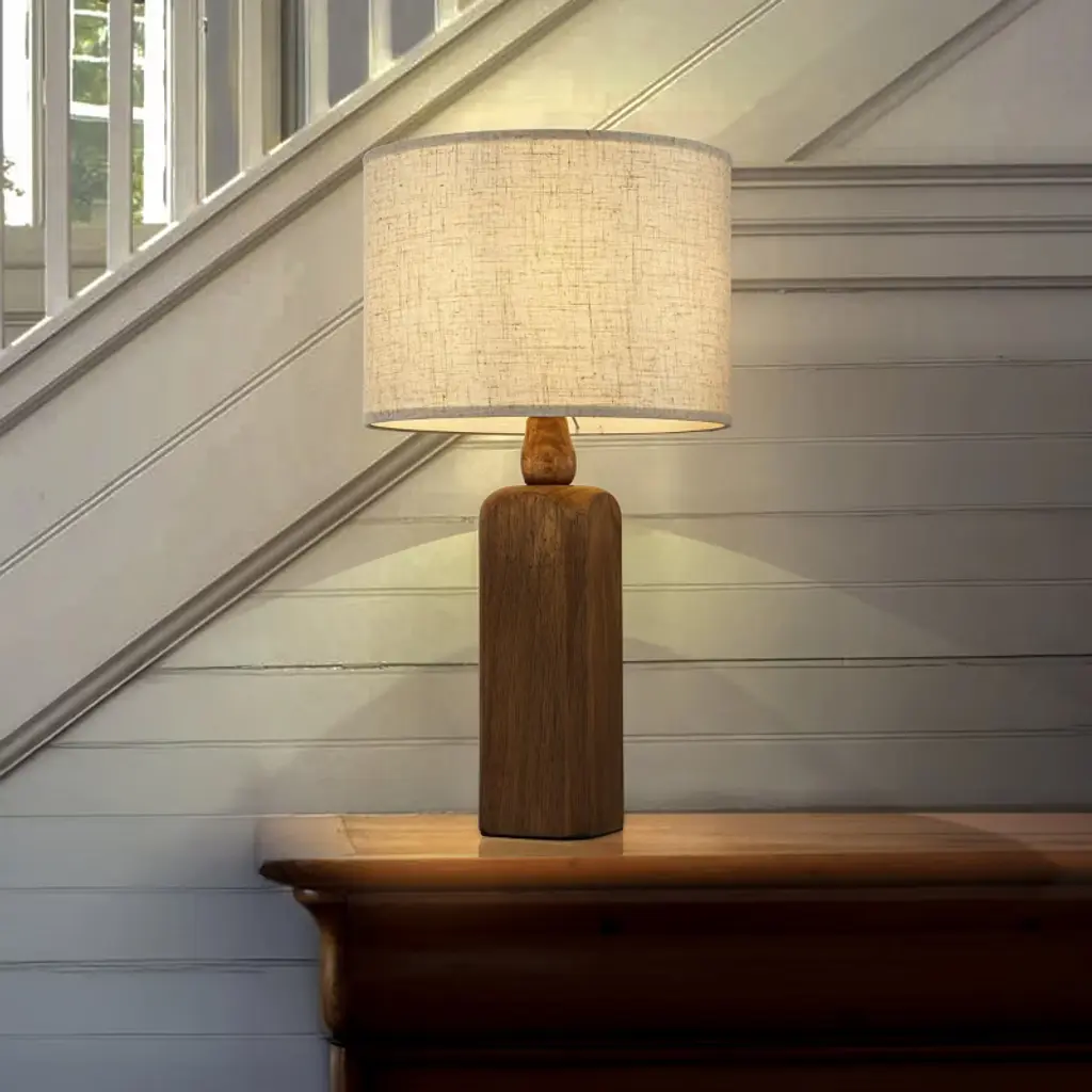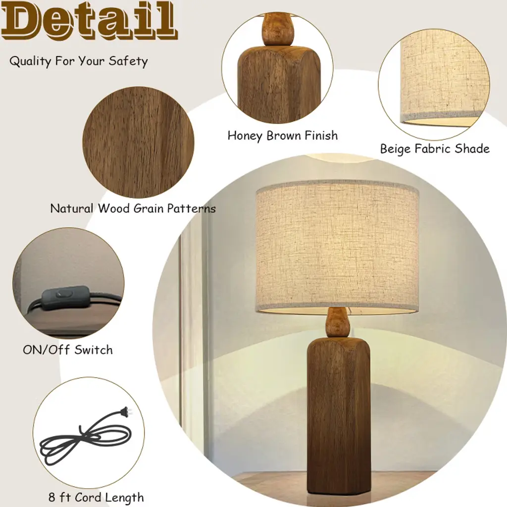 Elevate your space with this 22-inch Rustic Natural Wood Table Lamp, a perfect blend of natural beauty and timeless design. Featuring a stunning wood grain base with a warm, earthy finish and a soft beige fabric drum shade, this lamp creates a cozy and inviting glow that transforms any room. It seamlessly complements Farmhouse, Rustic, Mid-Century Modern, and Traditional decor, adding charm to bedrooms, living rooms, entryways, or offices. Designed with both elegance and practicality in mind, this lamp includes an 8ft cord with an easy-to-use on/off switch, offering effortless placement on nightstands, desks, or side tables. Compatible with a 60W E26 bulb (not included), it provides the ideal ambiance for reading, relaxing, or entertaining. Highlighting the beauty of natural wood grain, this lamp is more than just lighting--it's a statement of style and sophistication for your home. NOTE: Due to quality variances between different monitors and the use of studio lights, the colour that appears on your screen may differ from the physical product. Please be aware of this when ordering.
