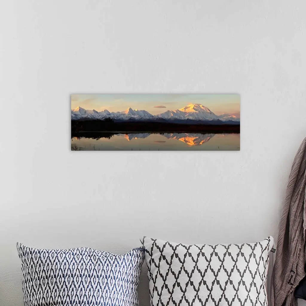Alpenglow On Mt. Mckinley, Also Known As Denali, Reflected In Tundra Pond At Sunrise, Fall, Denali National Park, Interior Alaska.