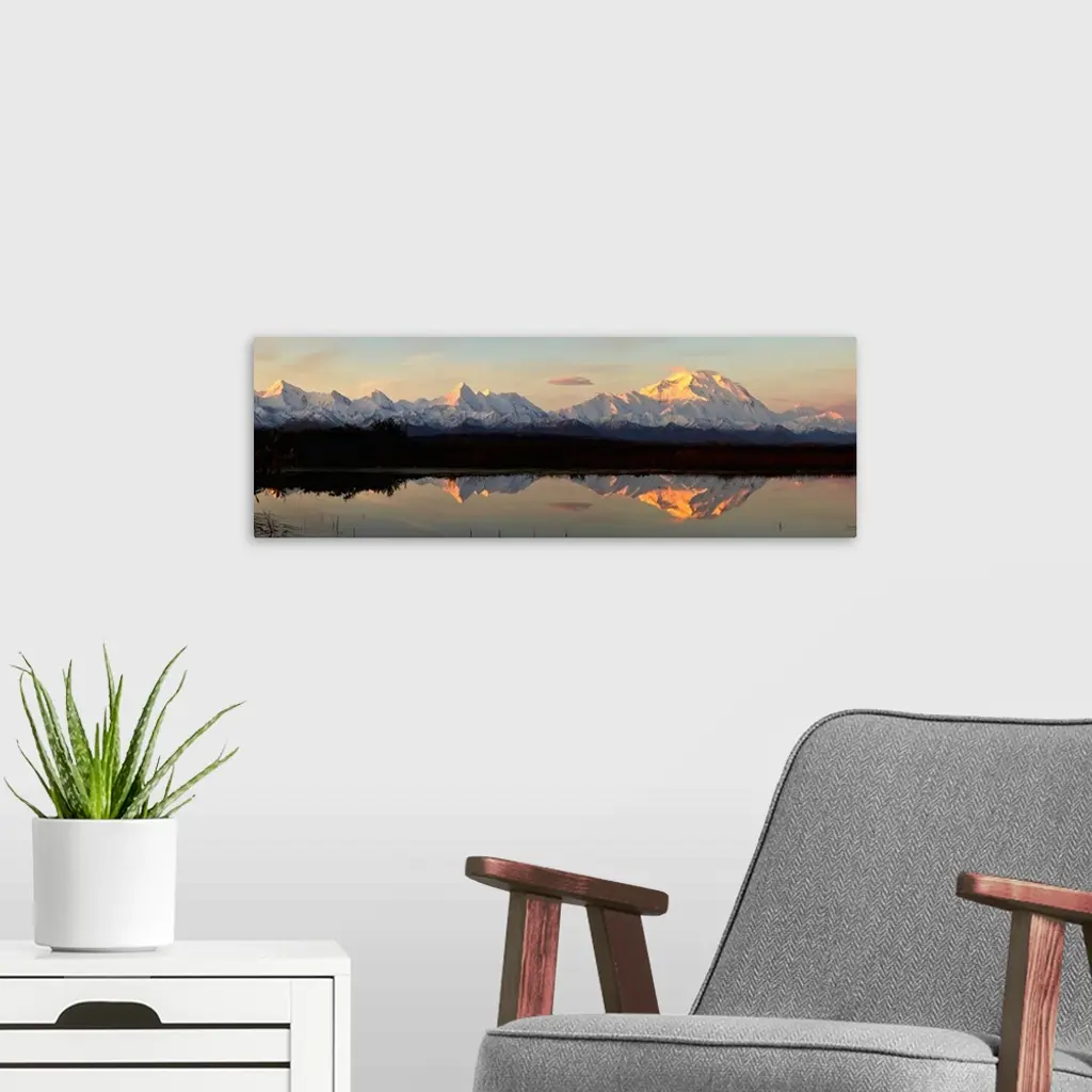 Alpenglow On Mt. Mckinley Reflected In Tundra Pond, Denali National Park