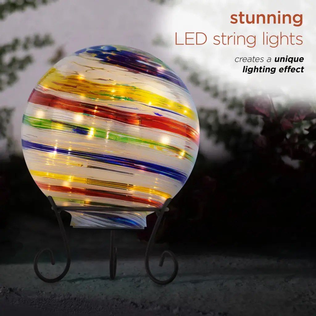 Alpine Colorful Gazing Globe With Led Lights, 10"tall
