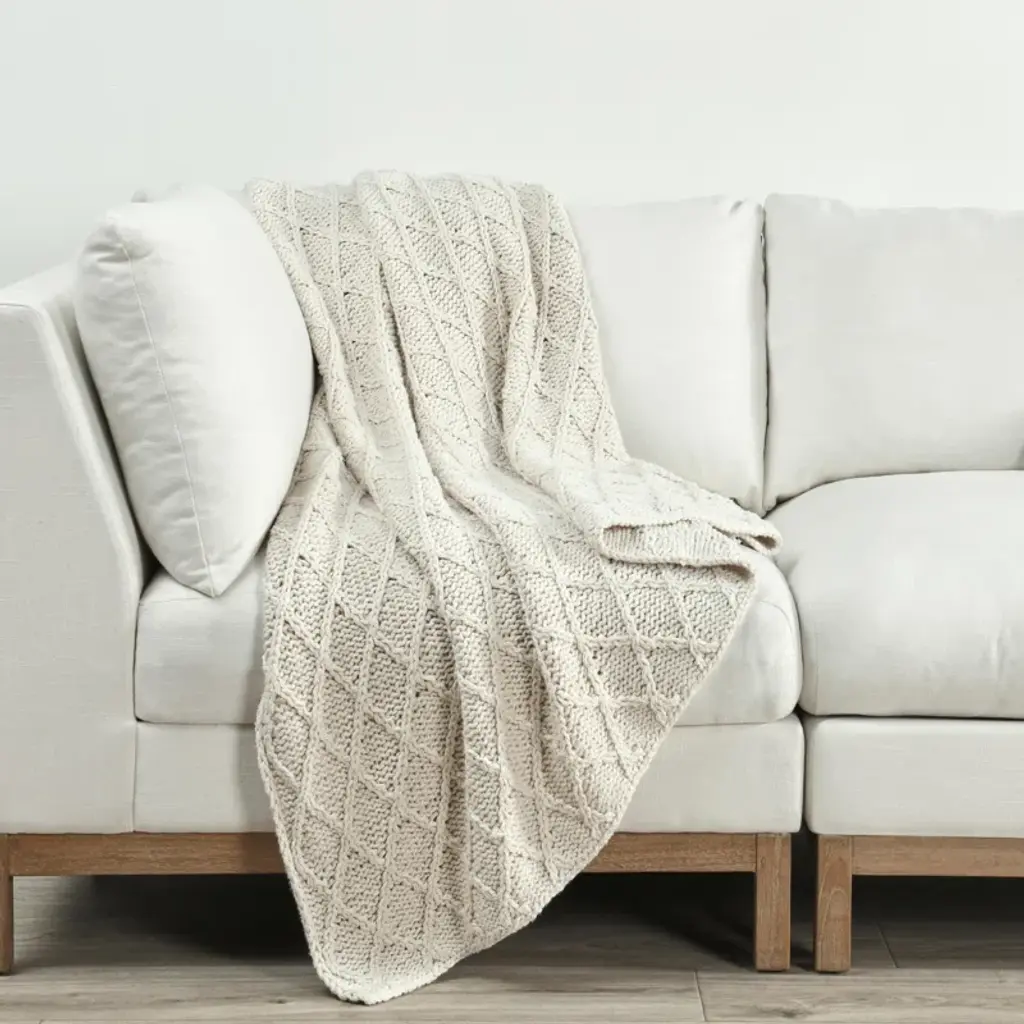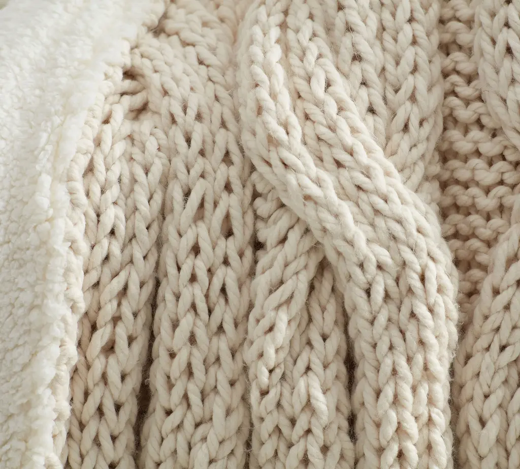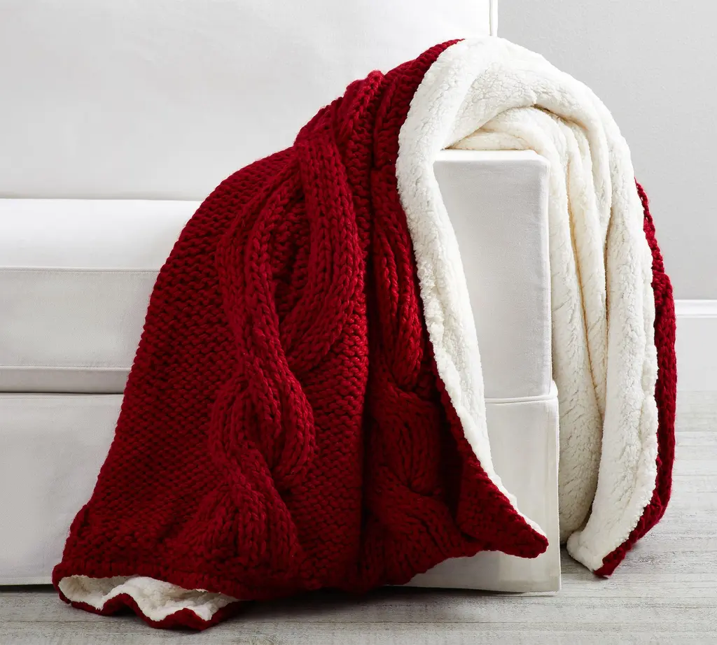 Our chunkiest, densest, and most plush throw features a handknit cable pattern and a sherpa reverse. Layer it in with other knit accents for a cozy haven on the sofa, or place it at the foot of the bed for a cuddle-soft wrap on cold nights. This snuggle-ready accent also makes a thoughtful gift any time of year.