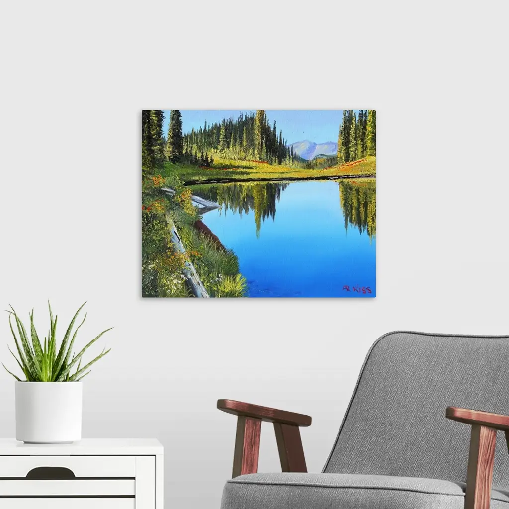 Alpine Lake wall art for home and office decor. Discover canvas art prints, photos, mural, big canvas art and framed wall art in GreatBigCanvas.com's varied collections.