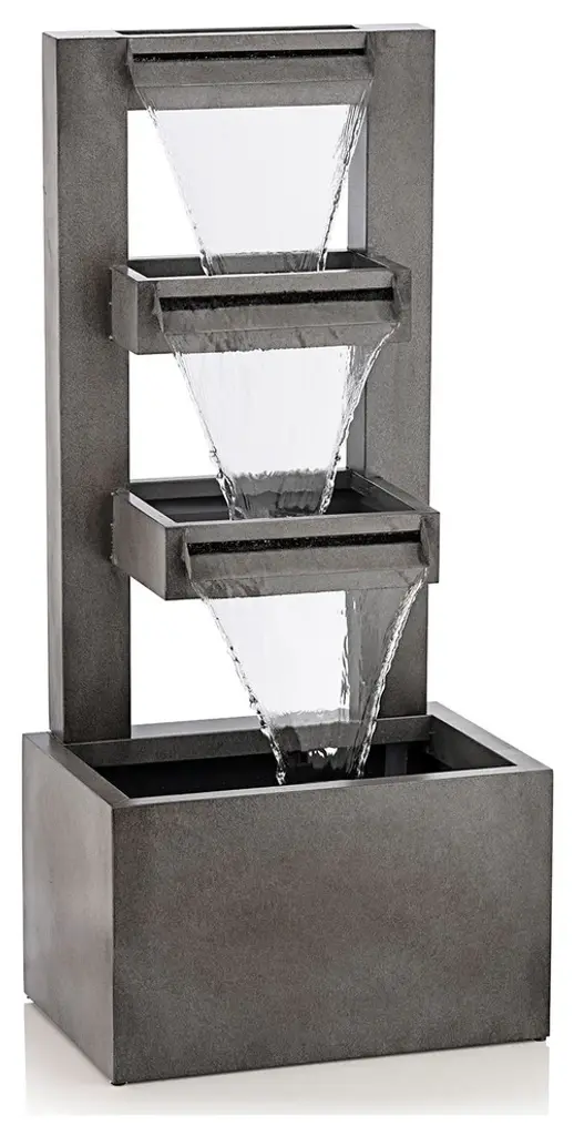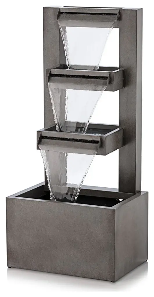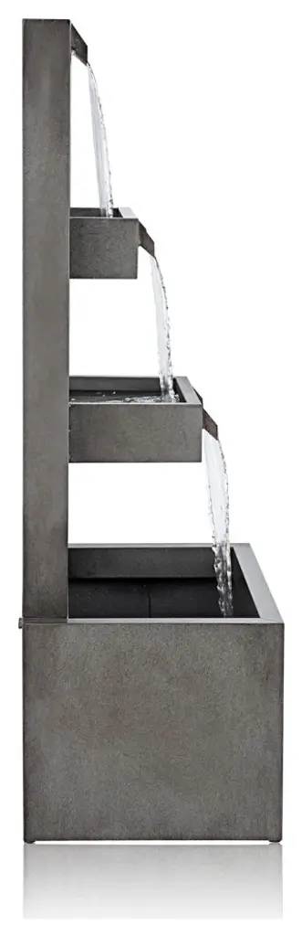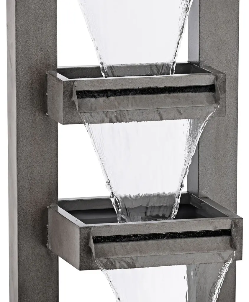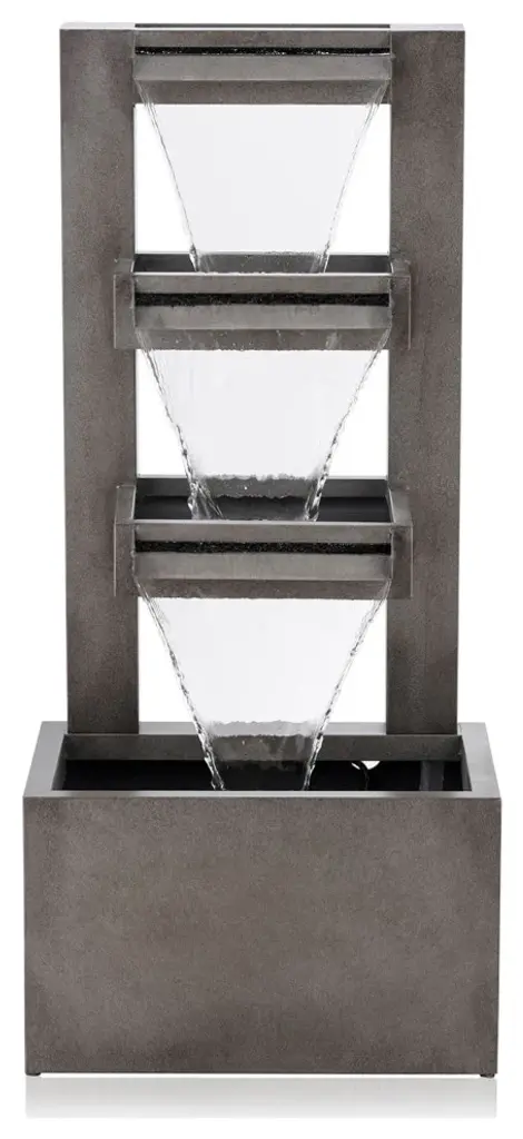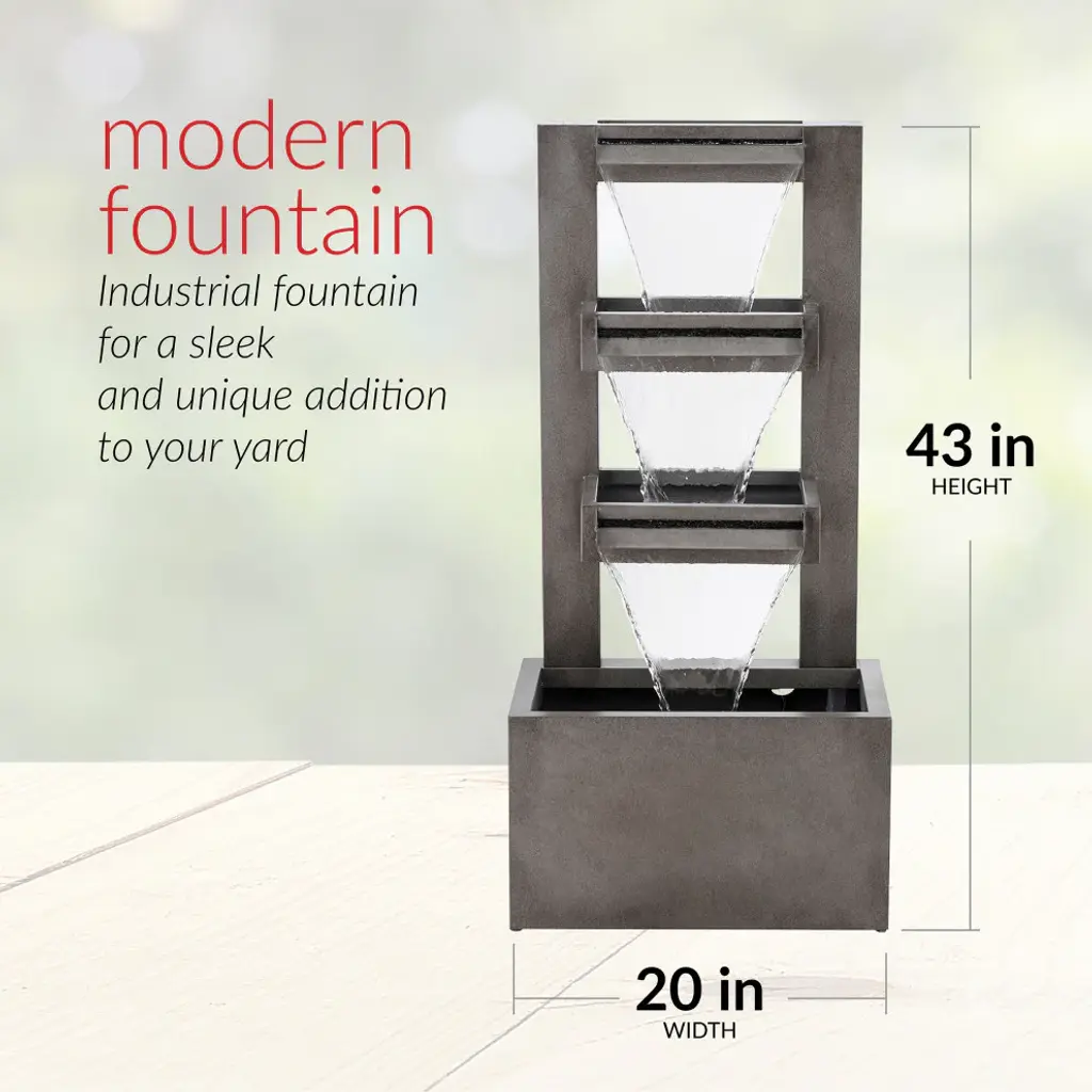 Modern interpretations of nature''s wonders give your home a clean, contemporary look while creating a relaxing ambiance. The combination of contemporary design mixed with natural elements gives a modern, sleek element to any outdoor decor. This decorative fountain is sure to bring elements of peace, serenity and class to your garden, patio, porch or deck.14"W x 20"L x 43"H, made of zincCascading streams of this metal tiered fountain adds a modern and unique accent to your decorMade of durable materials that will perfect your home, yard, and garden decorThe design adds a cosmopolitan look, while the relaxing, gentle water falling helps to bring in a natural elementIncludes a 1-year manufacturer''s warranty for worry-free operation