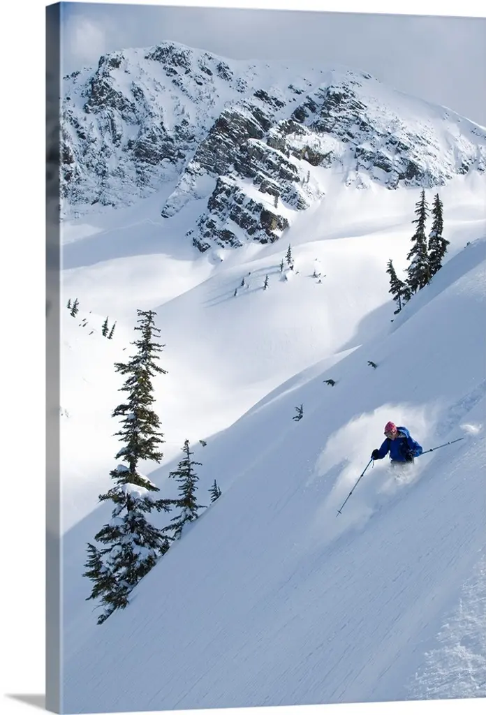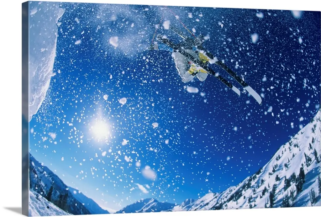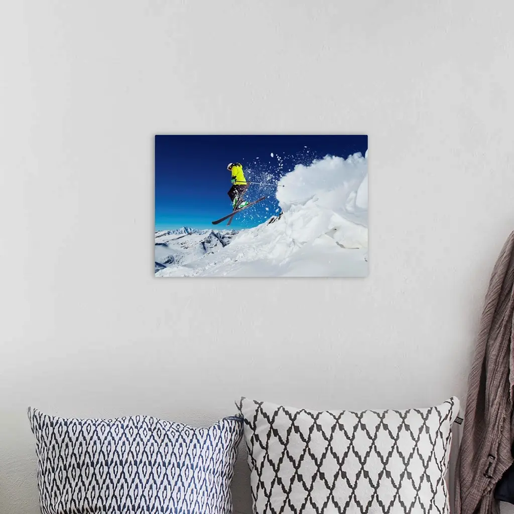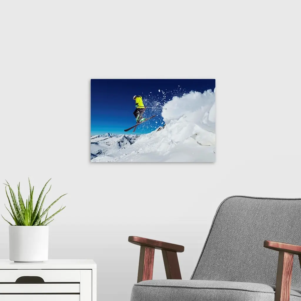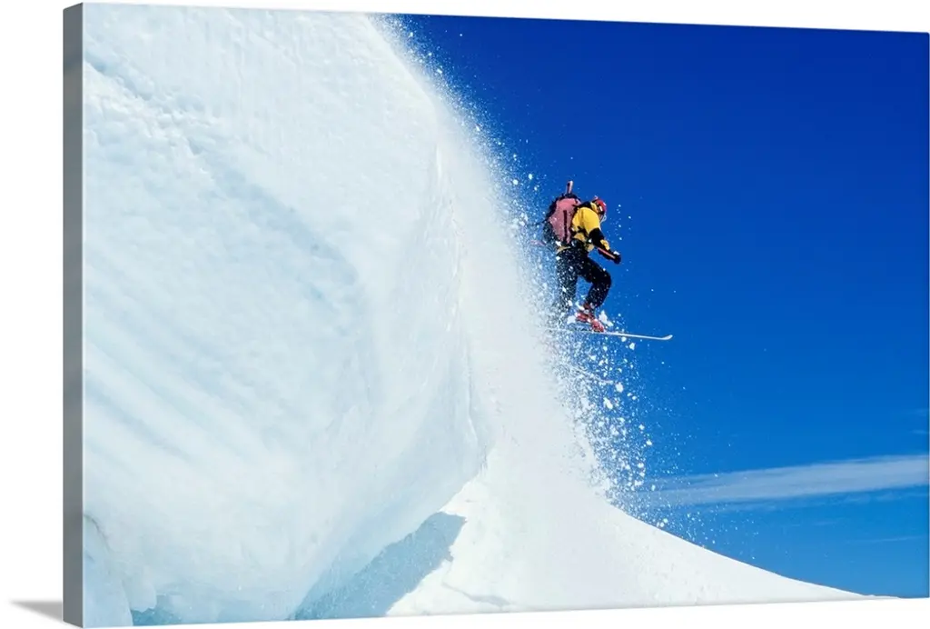 Alpine Skier Skiing Downhill, Blue Sky In Background