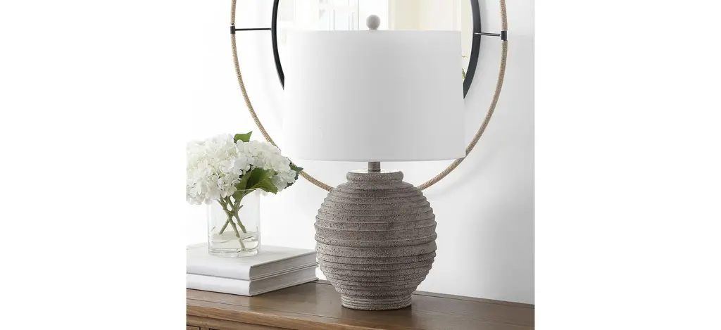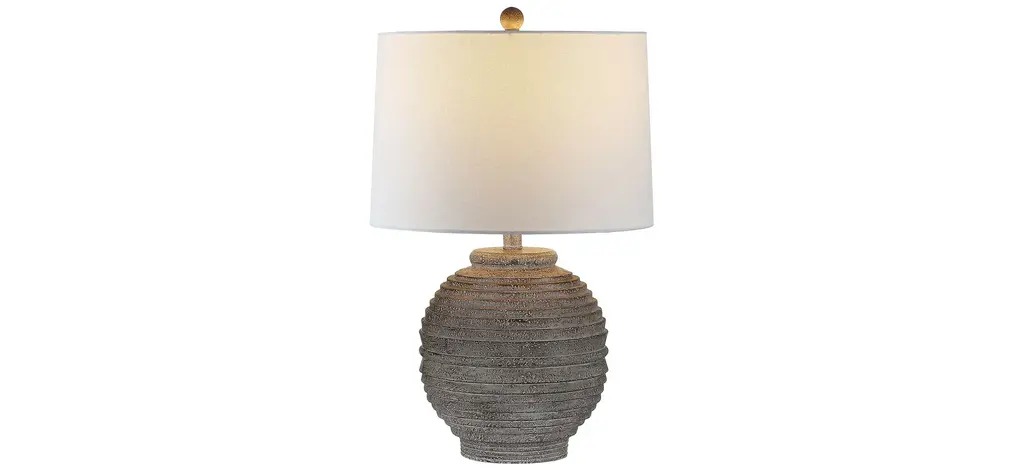 Boasting the look of an artifact straight out of the London Museum's collection, this Alron Table Lamp is breathtaking. Alron's textured striations and subtle cinching give its brown poly-resin body a weathered vintage look, and a crisp drum shade ensures it seamlessly accents any d_cor.