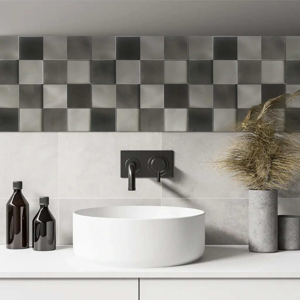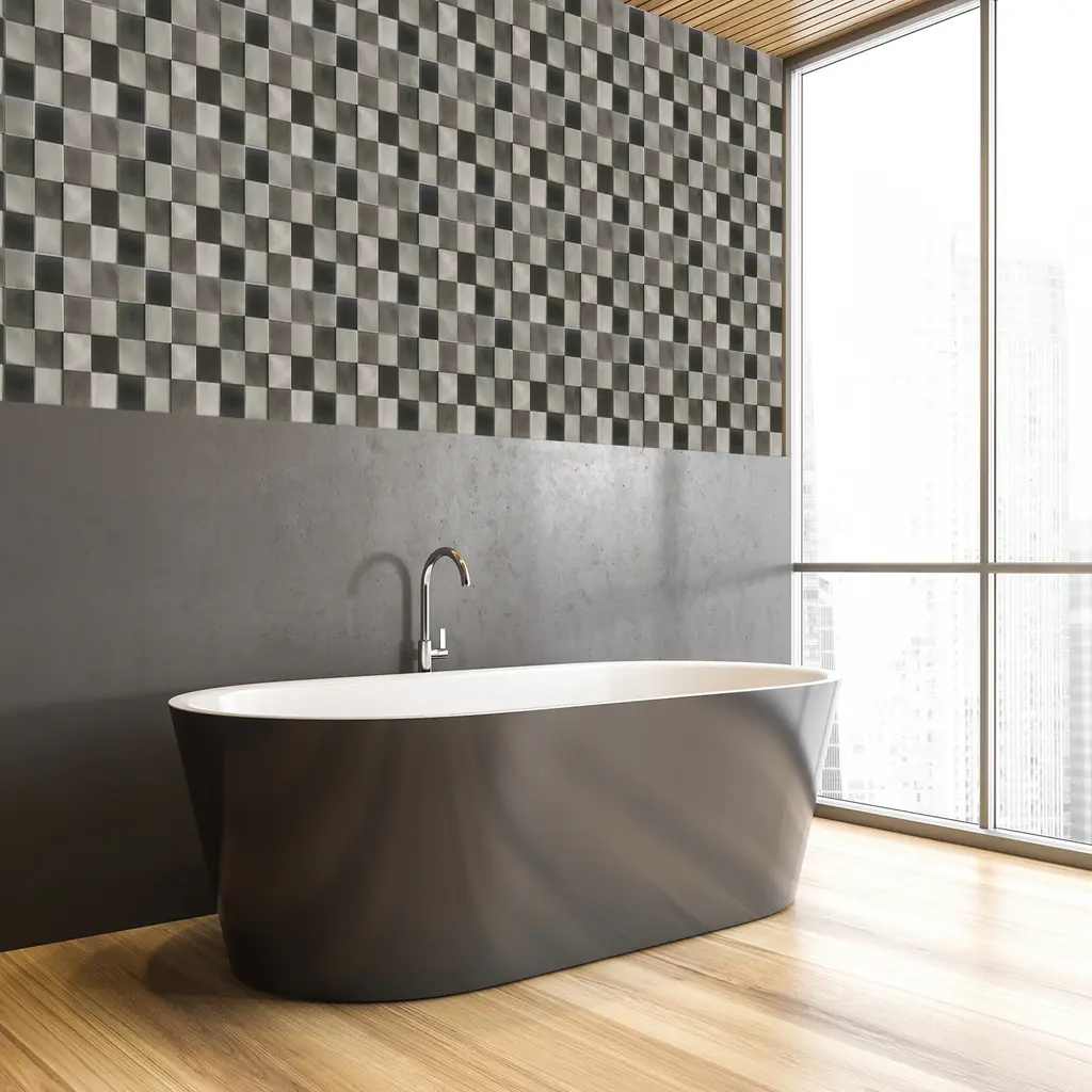 Looking for an eye-catching accent for your ultra-contemporary living space? Our unique Mijas metal mosaic tile combines a modernistic appearance with long-lasting durability. Use this checkerboard-style tile to create a dazzling wall covering or fireplace façade. The convenient peel-and-stick design makes DIY installation a breeze. Features