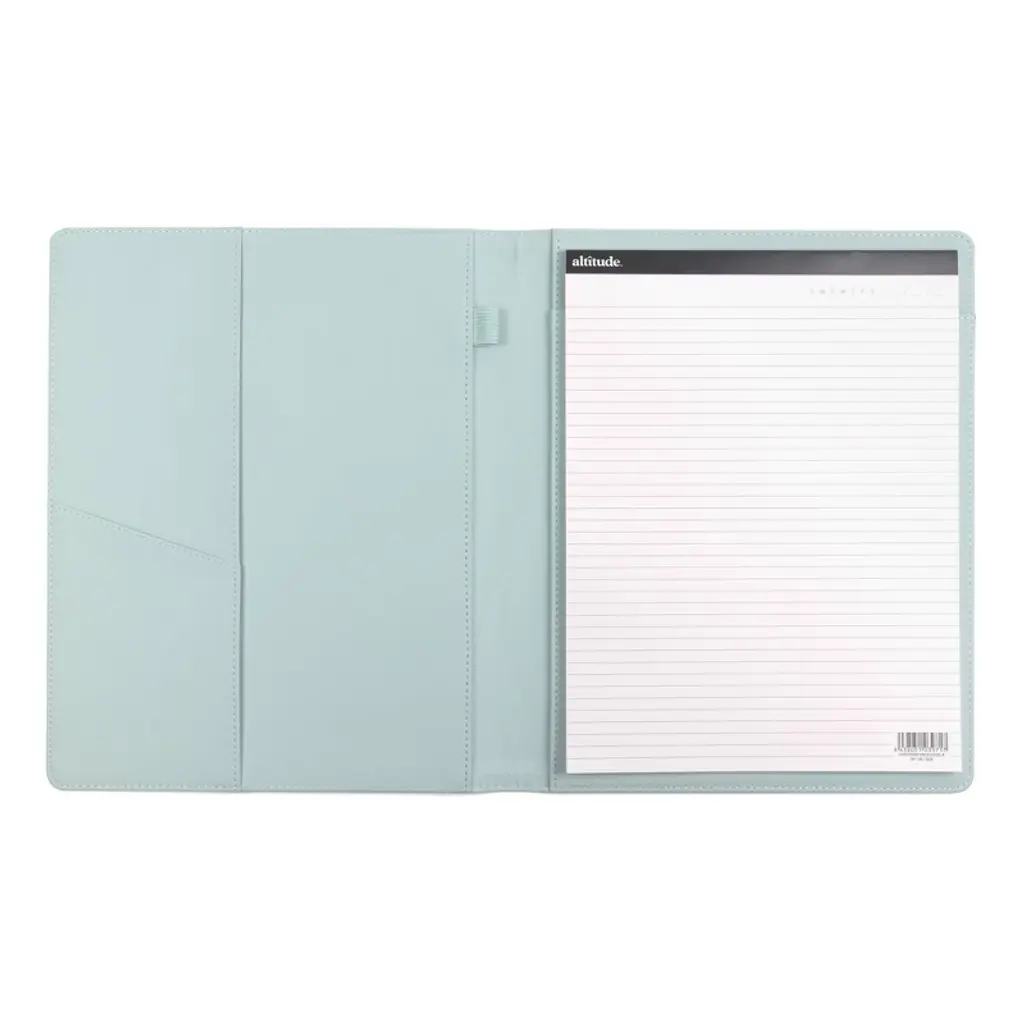 Altitude Padfolio 10"x12.5" Vegan Leather Seafoam Blue Debossed Arch