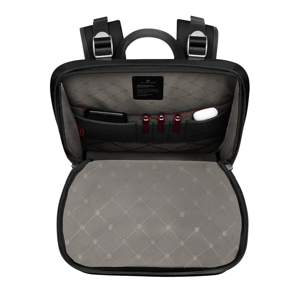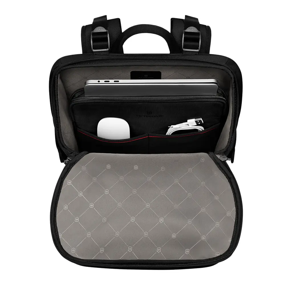 Easily shift from work to play with Victorinox's Altmont Modern Commuter Backpack. Securing your tech safely in the removable 15.6" laptop sleeve, you can max out your other travel essentials in the carefully designed organizational spaces. From a scratch-resistant pocket to a key fob, sound pocket and integrated multipurpose net, you can store everything you need for your trip.