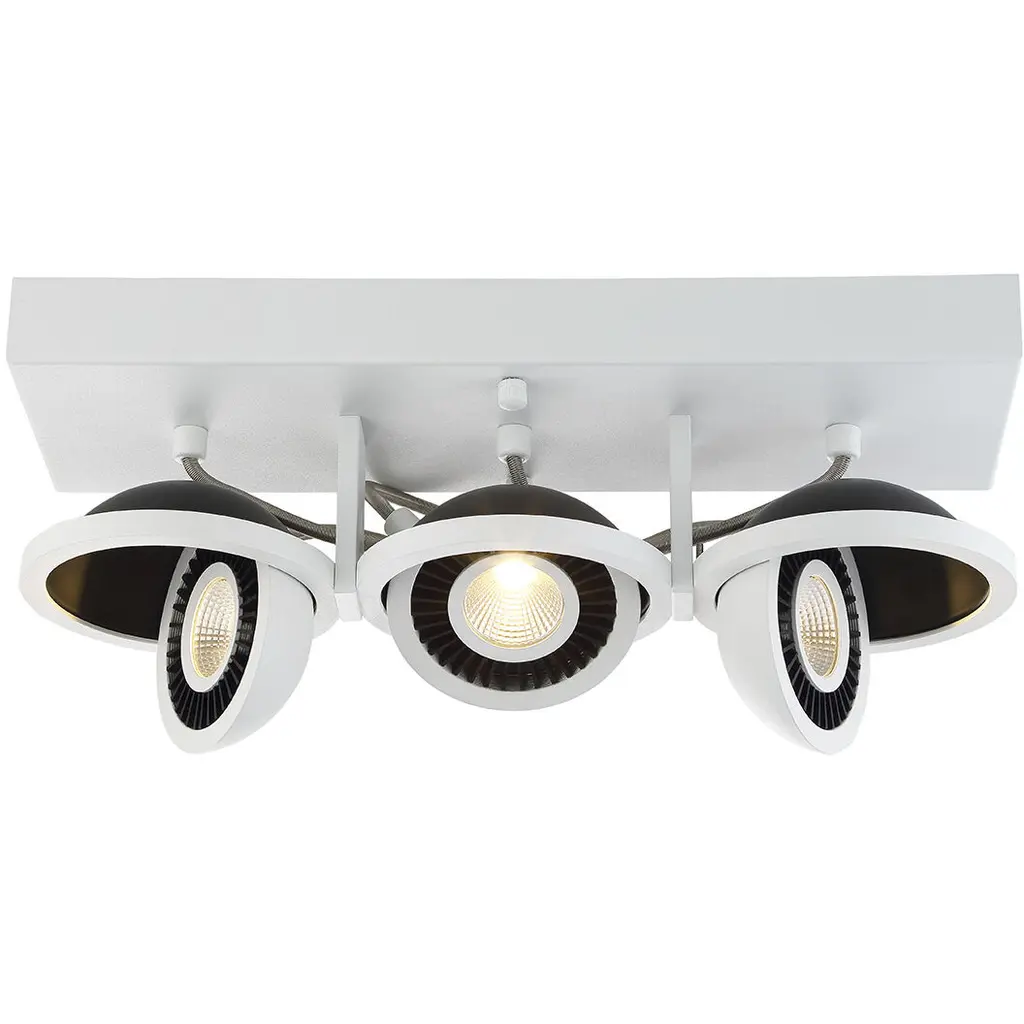 Clean lines in linear or single mounted styles are two ways the Alto directional spot light collection shines bright. Numerous directional lamps offer the option of precise lighting for any large interior space. The element of modernism in the tapered shades making the Alto the perfect solution for any living or working space. An LED light source provides energy saving, low maintenance and long lasting performance.FEATURES:• Distinctive look and quality aluminum, steel construction• Metal shade provides bright illumination and a mid-century modern feel• Adjustable, rotating spot lights offer flexibility to brighten any space with precision• 3 x 7 watt LED GU10 bulbs (included) for energy saving, no bulb changing convenience, low maintenance and long lasting performance• 1650 lumens brightness, 3000K CCT (warm white), CRI 90 (daylight)• Dimmable for desired illumination levels when used with compatible dimmer wall switch• 11-in W x 7.25-in H x 11-in D• ETL rating demonstrates this product has met USA requirements for product safety standards• 1 Year limited warranty