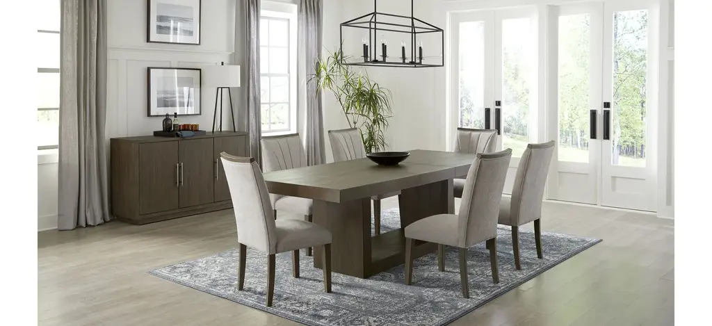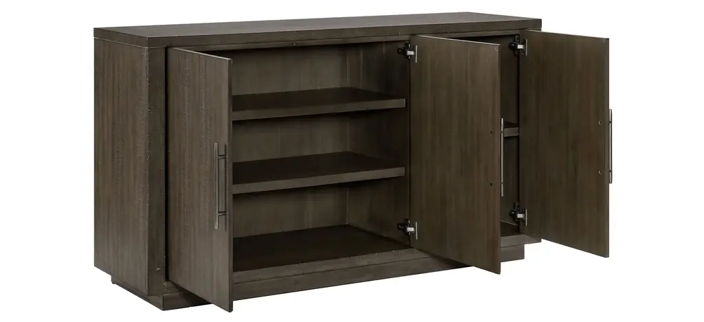 In a break from the minimalistic styling of contemporary design, the Alton Dining Server provides a substantial platform for your dining pleasure. The acacia veneer of the collection is treated to a brown finish, its hue a neutral addition to your space. The server provides ample behind door in-space storage for your linens and tabletop dcor.