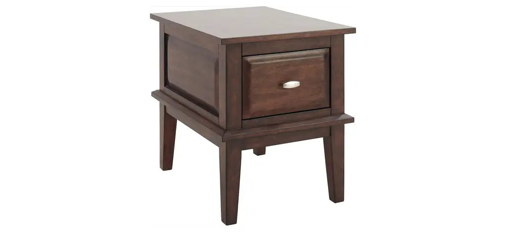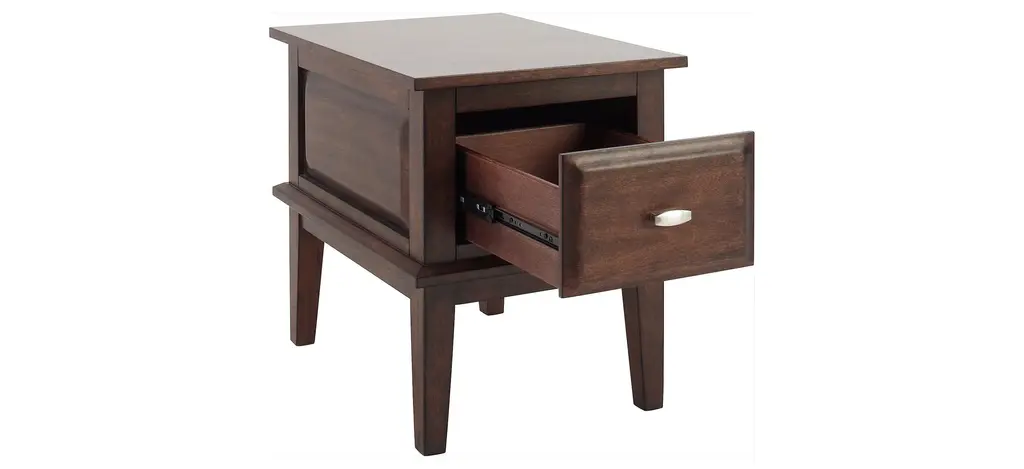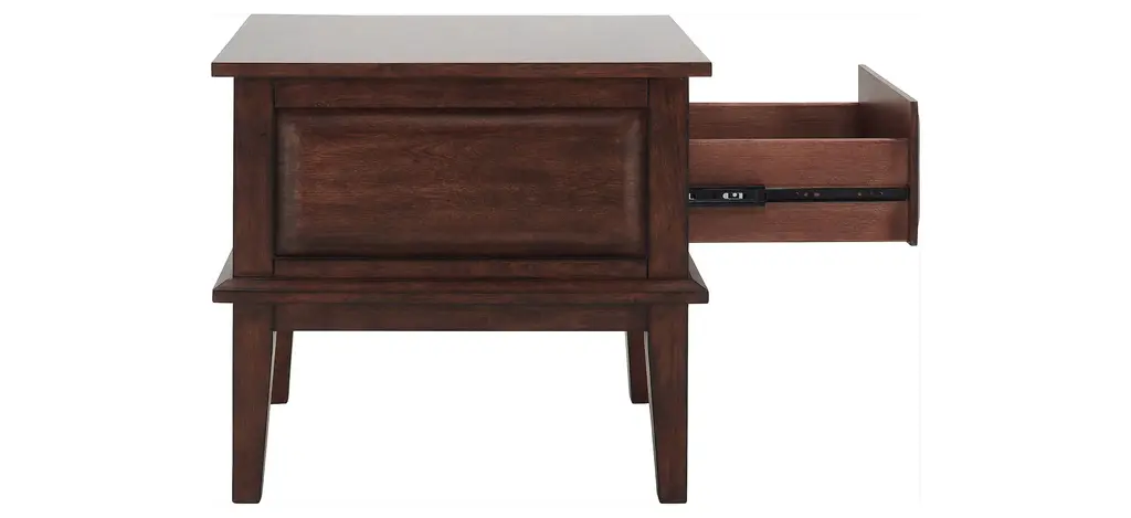 For a traditional touch in your living room space, the Alton end table has you covered. The rich wood tone paired with the nickel hardware finish creates a stunning look. Plus, the drawer is ideal for hiding your items.
