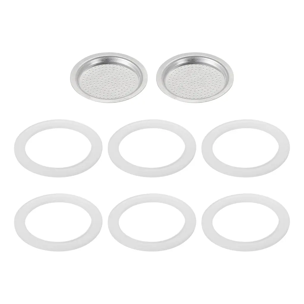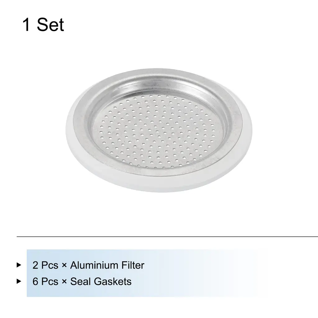 What is this?The espresso maker replacement filter is a critical accessory for the aluminum coffee pot, after a long time of daily use, the coffee pot old filter is important to replace a new one to extend the useful life of the potWhat will I get?The mocha pot filters,size: 46x36x4mm/1.81x1.42x0.16 inch(OD*ID*H);Type: Fit for 1-Cup use mocha coffee pot, Material:Aluminium;Color: Silver,Package Content(7PCS):1 × Aluminium Filter,6 x Seal Gaskets,Are there any advantages of the product?The coffee pot filter is made of aluminum with a smooth surface, strong and study, durable and rust-resistant for Long-term use.How to use it?Replace the old filter of your coffee machine with the filter you receive, easy to install and remove.What should I notice? Notes:The product is manual measurement, there is a little error, please refer to the actual product.
