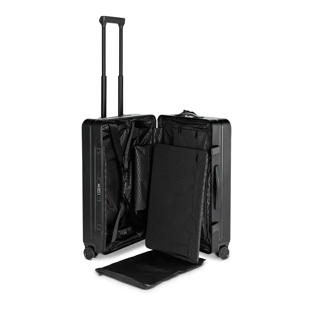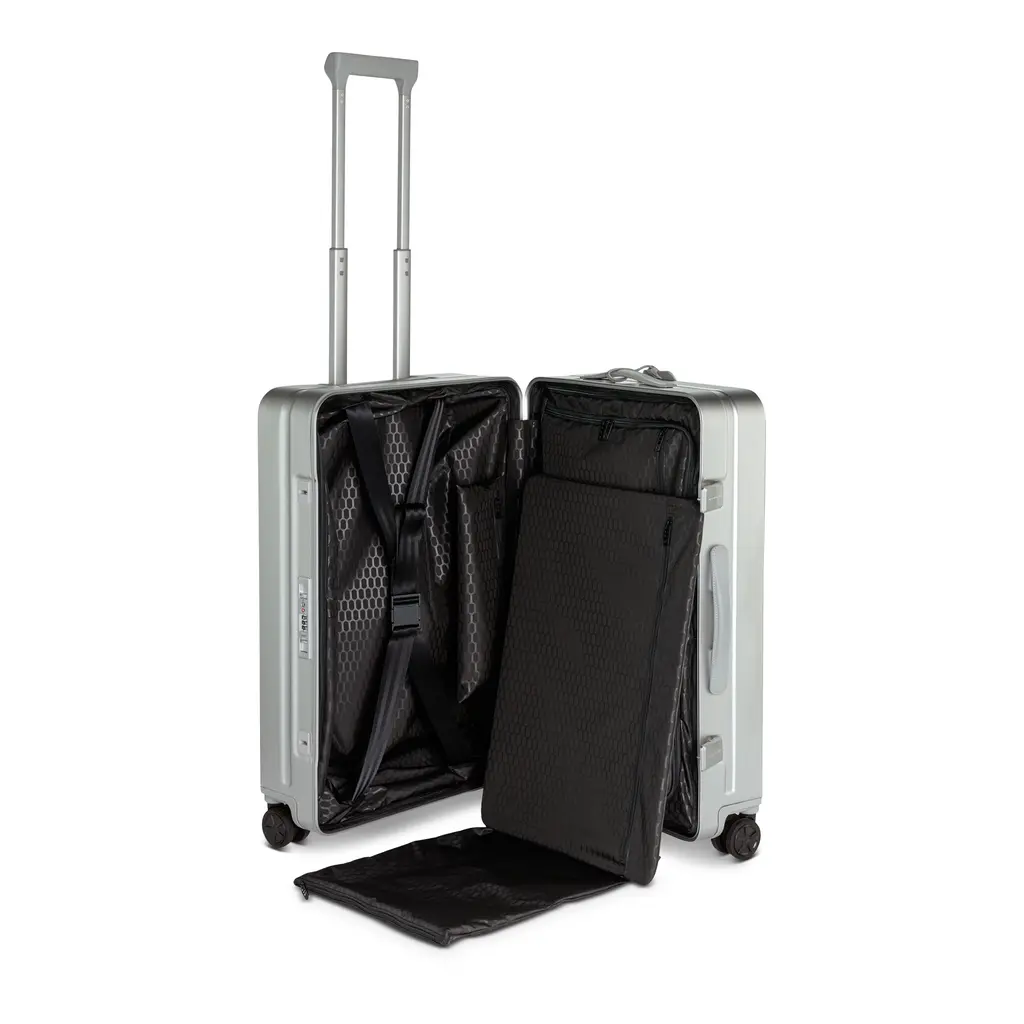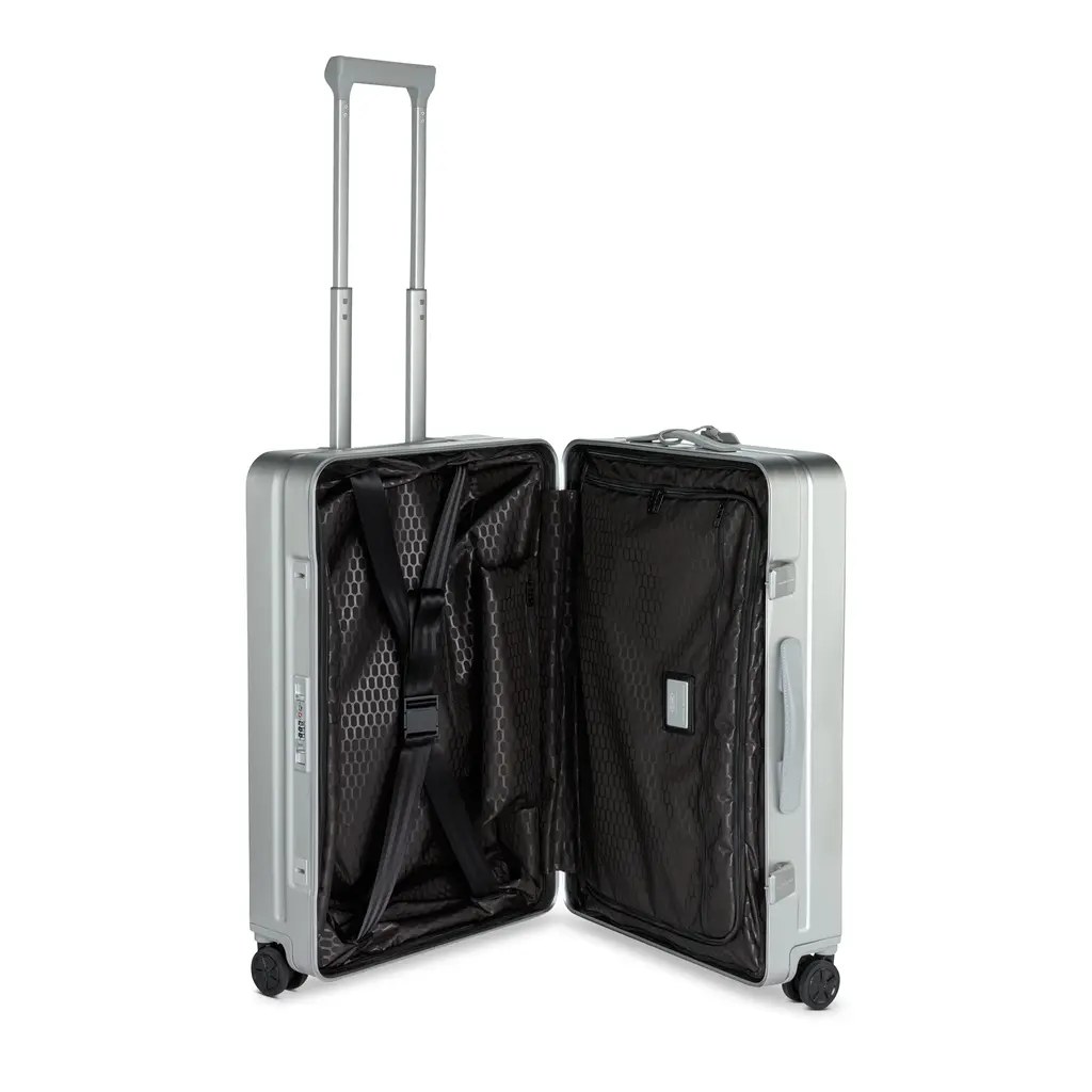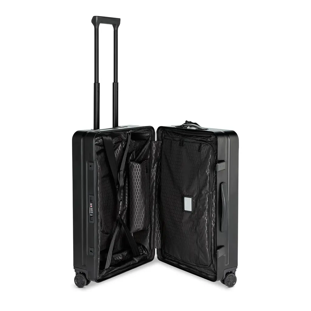 Welcome to the New Porsche Design Aluminum Collection. Imagine a trolley collection that could represent stability and safety, designed to express sportiness and elegance: Aluminum is the perfect material. The most clean and puristic structure, inspired more than ever by Porsche cars. The front pattern is inspired by the aerodynamic shape of the 911, the wheels recall the original Porsche classic design, indicating performance and vigor. Made in Italy for racers, engineered to protect.
