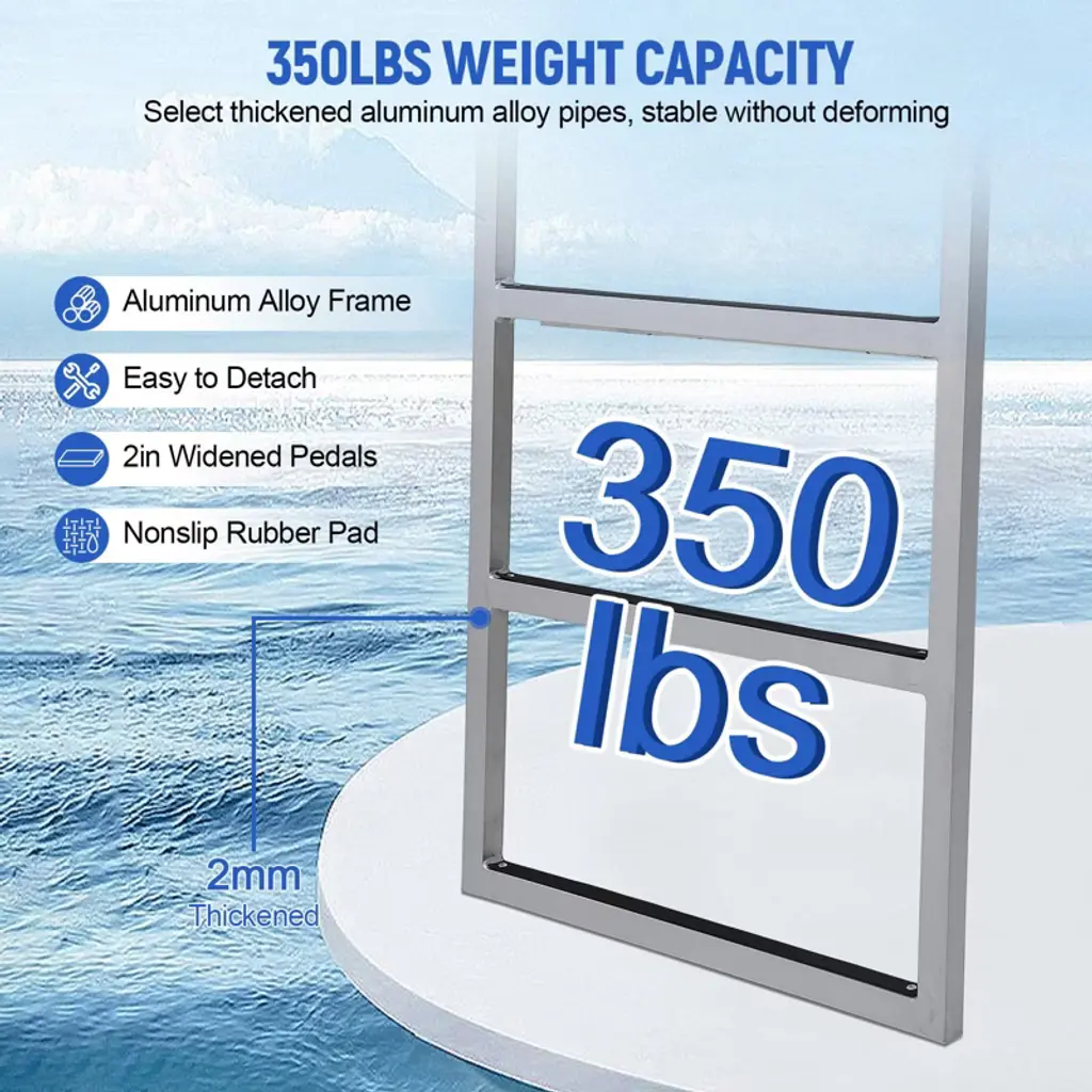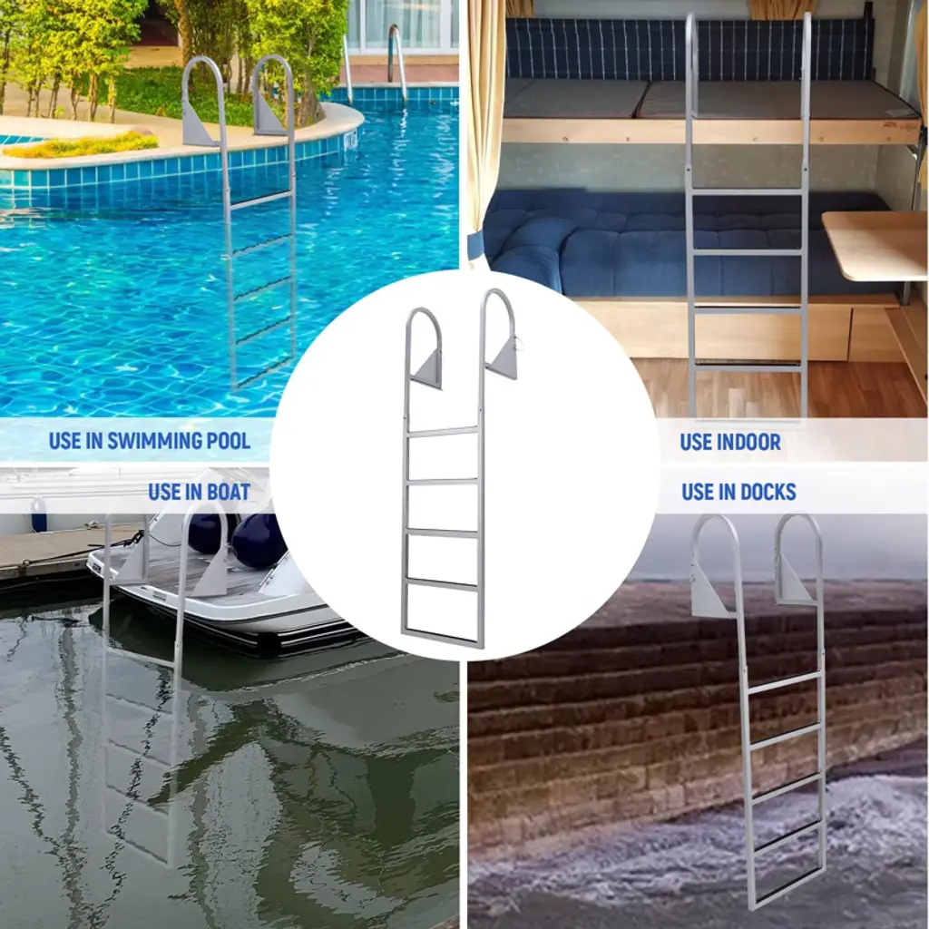 Aluminum Dock Ladder 5 Steps, Removable Boat Ladder 350lbs Load Capacity, Pontoon Ladder Pool Stairs