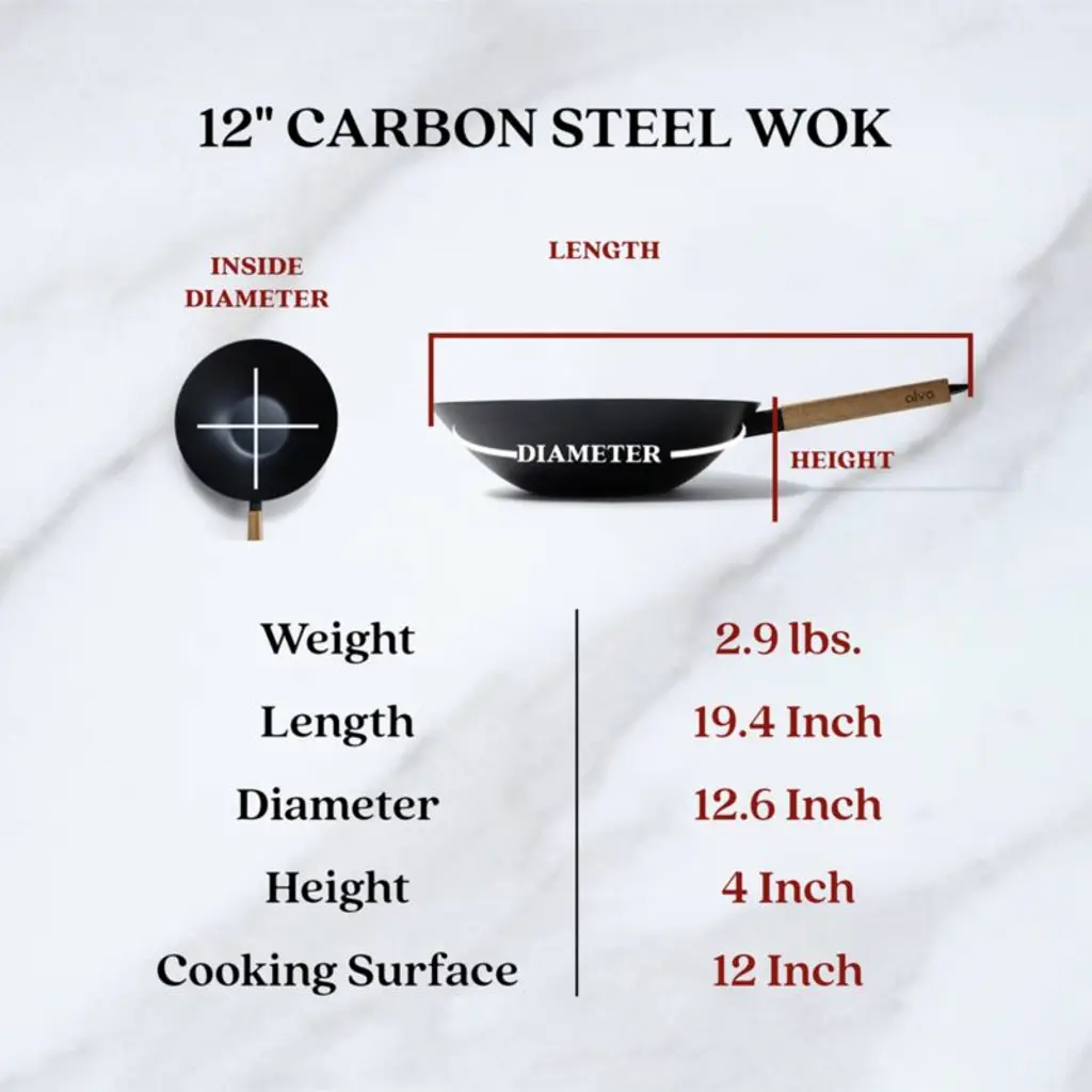 Generously proportioned to cook for a crowd, this thoughtfully designed wok stirs, fries, sears and tosses all of your favorite ingredients to perfection. Professional-grade blue carbon steel shapes the matte black pan, pre-seasoned with mineral oil for a naturally non-stick finish. The lightweight metal heats quickly and withstands high temperatures for incredibly responsive and nuanced cooking. Crafted of acacia wood, the ergonomic handle stays cool and finishes the wok with a warm, organic look.