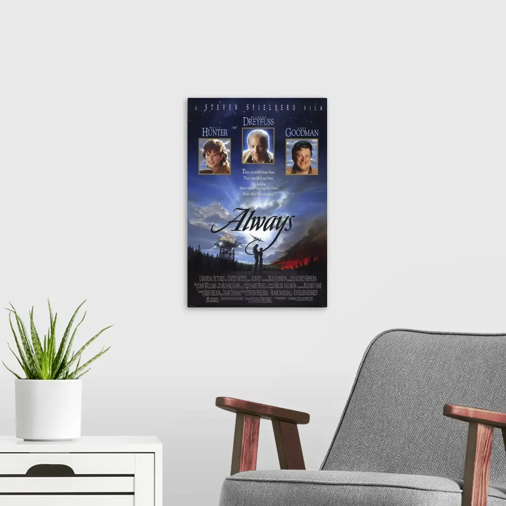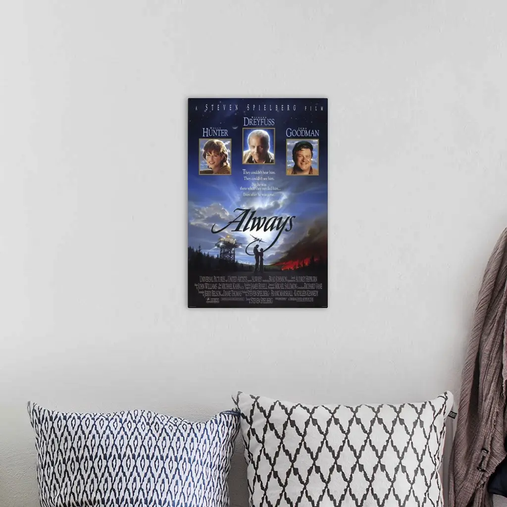 A hotshot pilot (Dreyfuss) meets a fiery end and finds that his spirit is destined to become a guardian angel to the greenhorn fire-fighting flyboy (Johnson) who steals his girl's heart. Warm remake of A Guy Named Joe, one of Spielberg's favorite movies. Sparks between Dreyfuss and Hunter eventually ignite, but Goodman delivers the most heat. Hepburn makes an appearance as the angel who guides Dreyfuss. An old-fashioned tree-burner romance that includes actual footage of the 1988 Yellowstone fire.